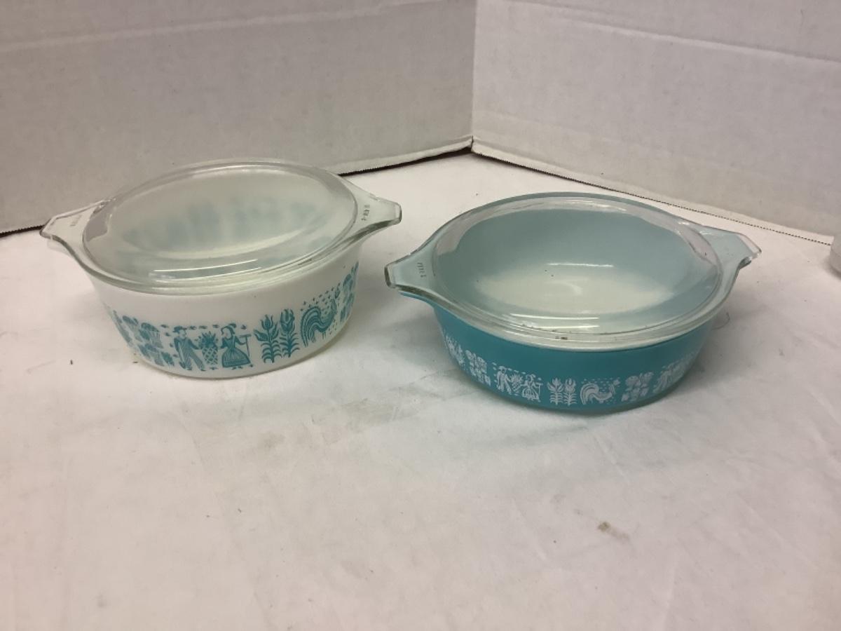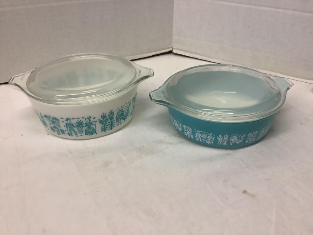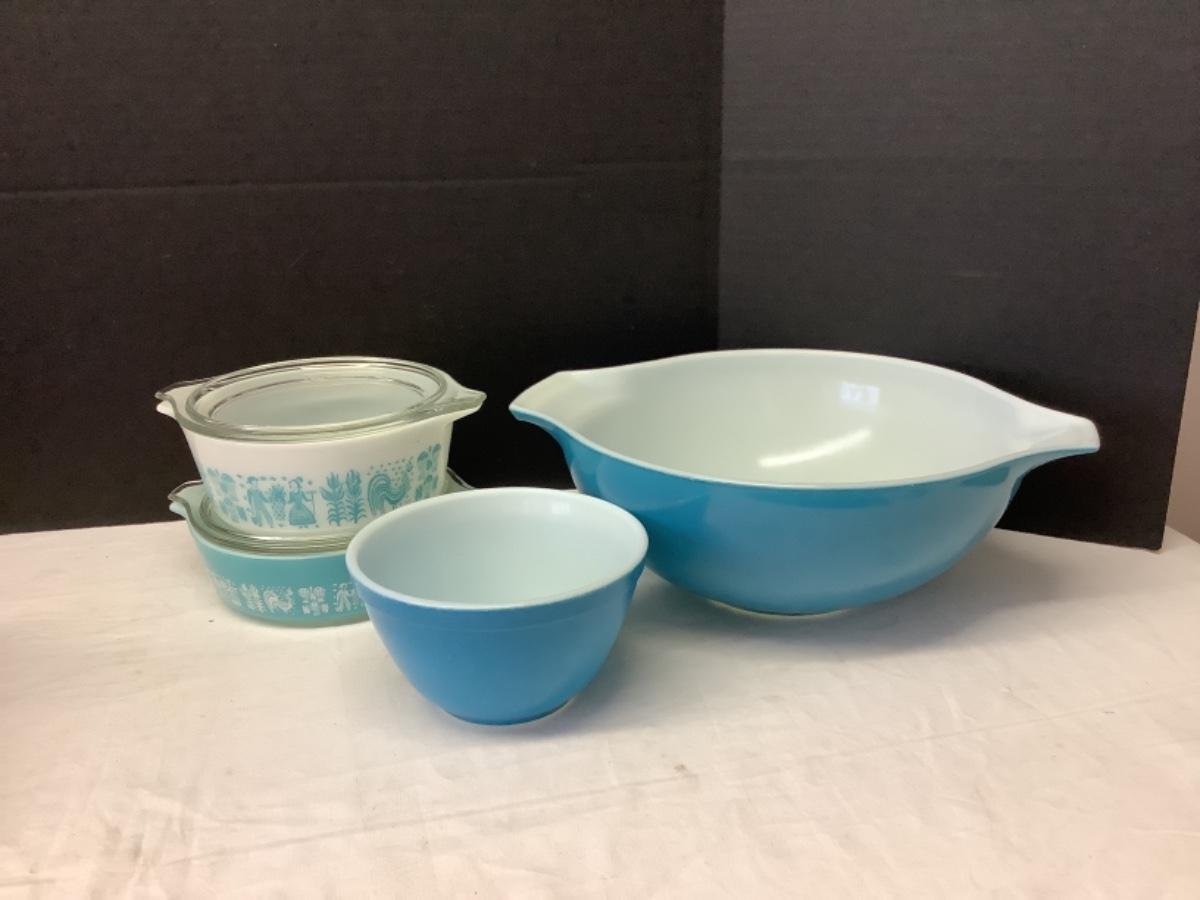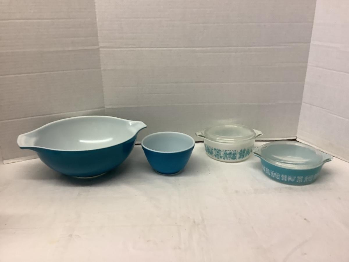 279. Vintage Pyrex Turquoise & Turquoise/White
