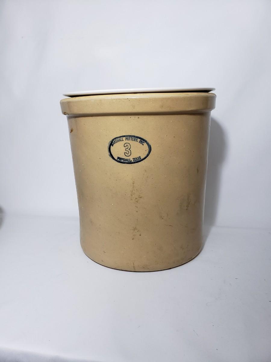 #3 crock with white plate as lid 12"x11.5"