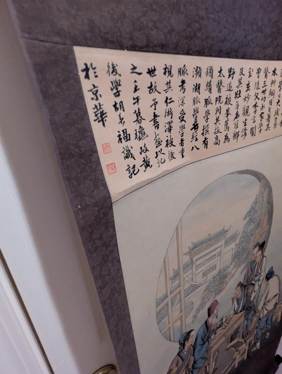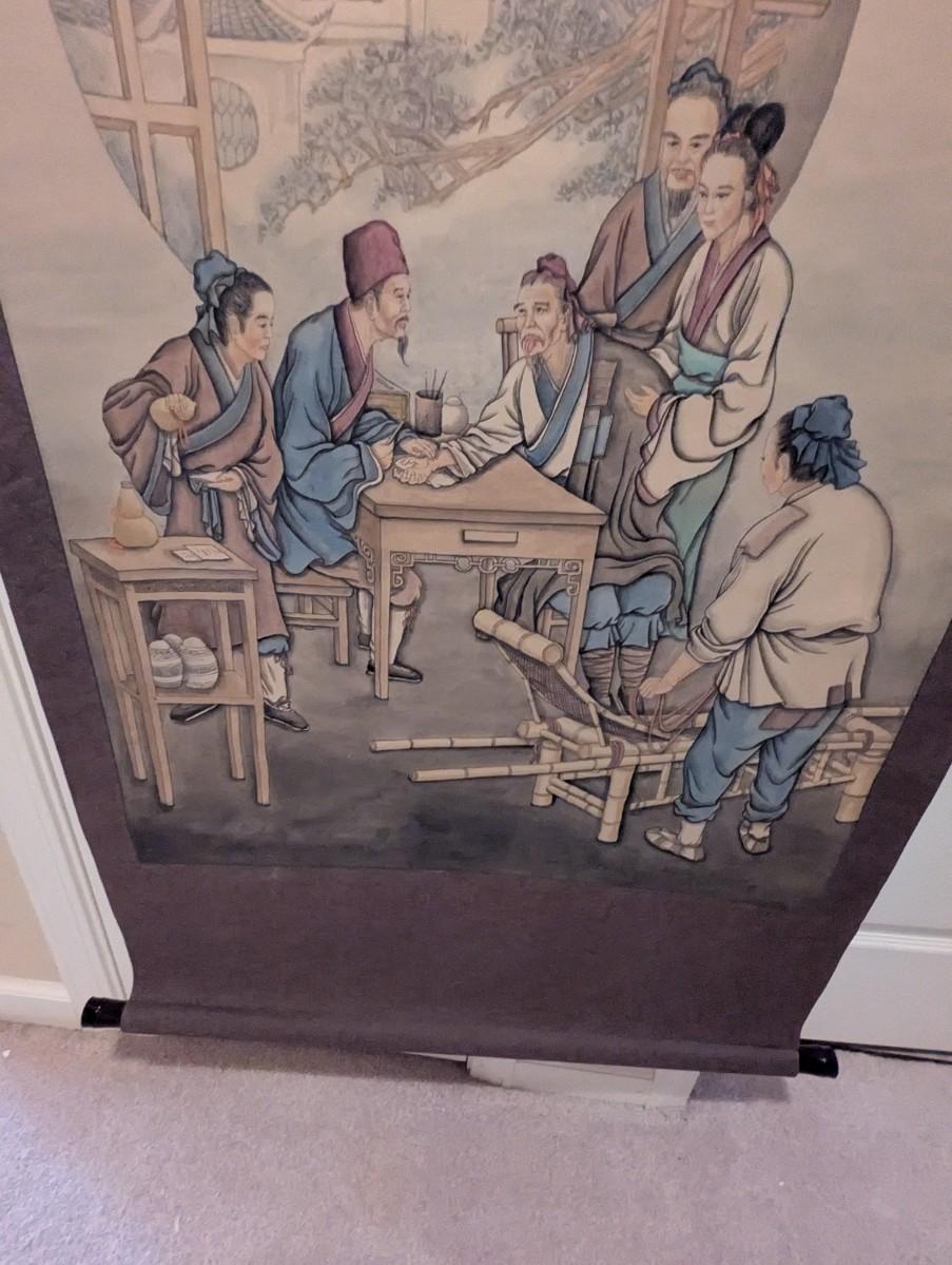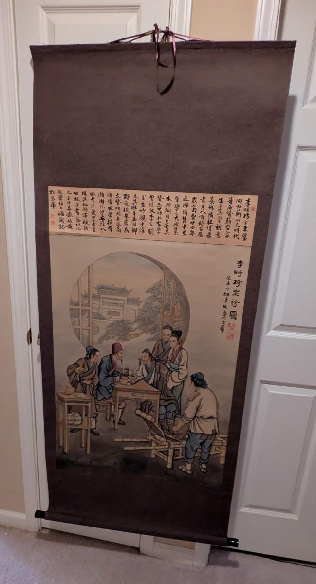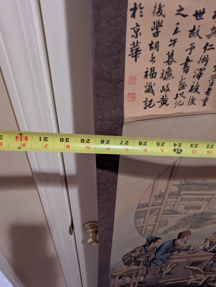 28 1/2" x 65" Antique Chinese Painting On Silk & Paper With Artist Mark & Calligraphy