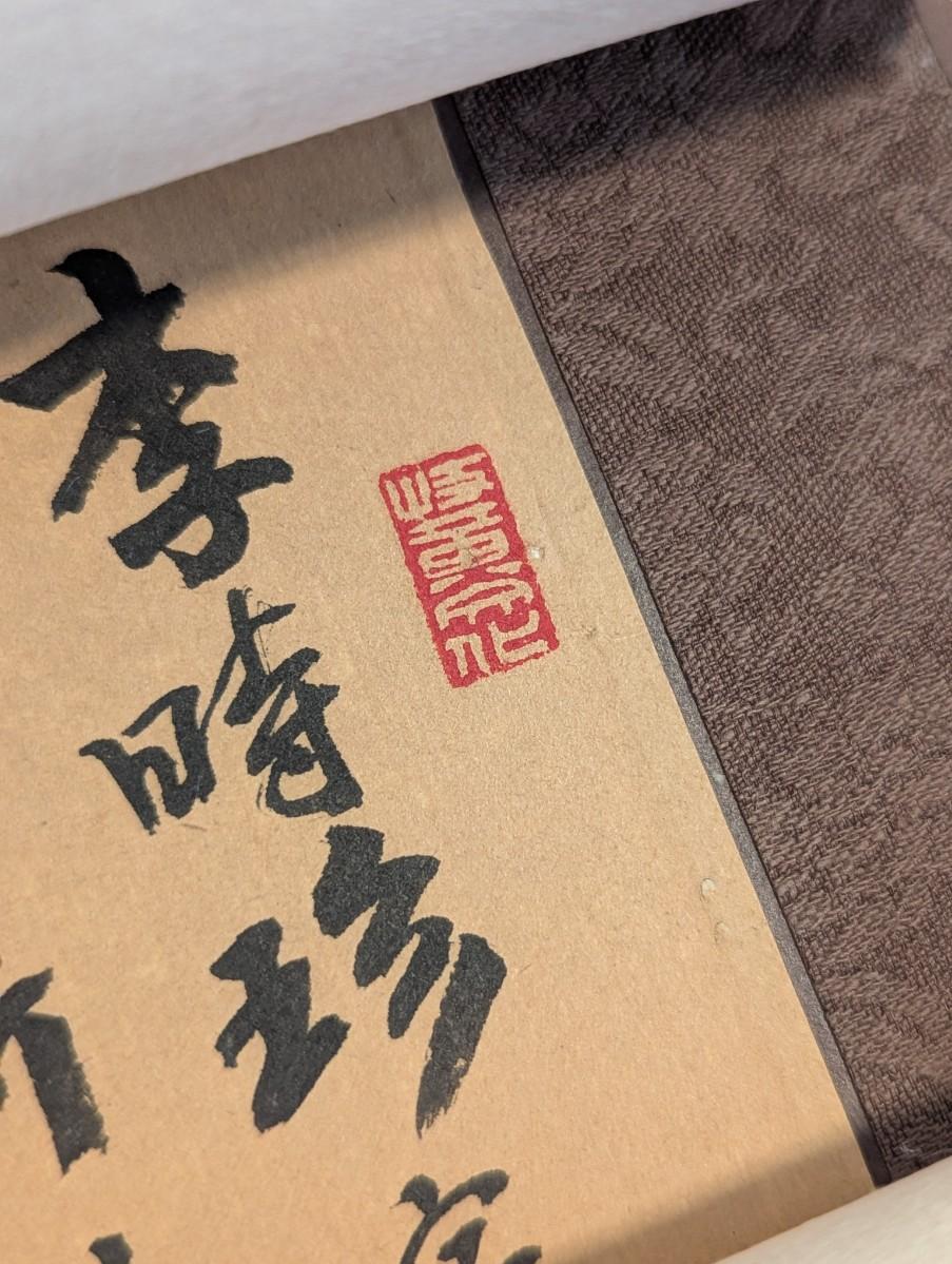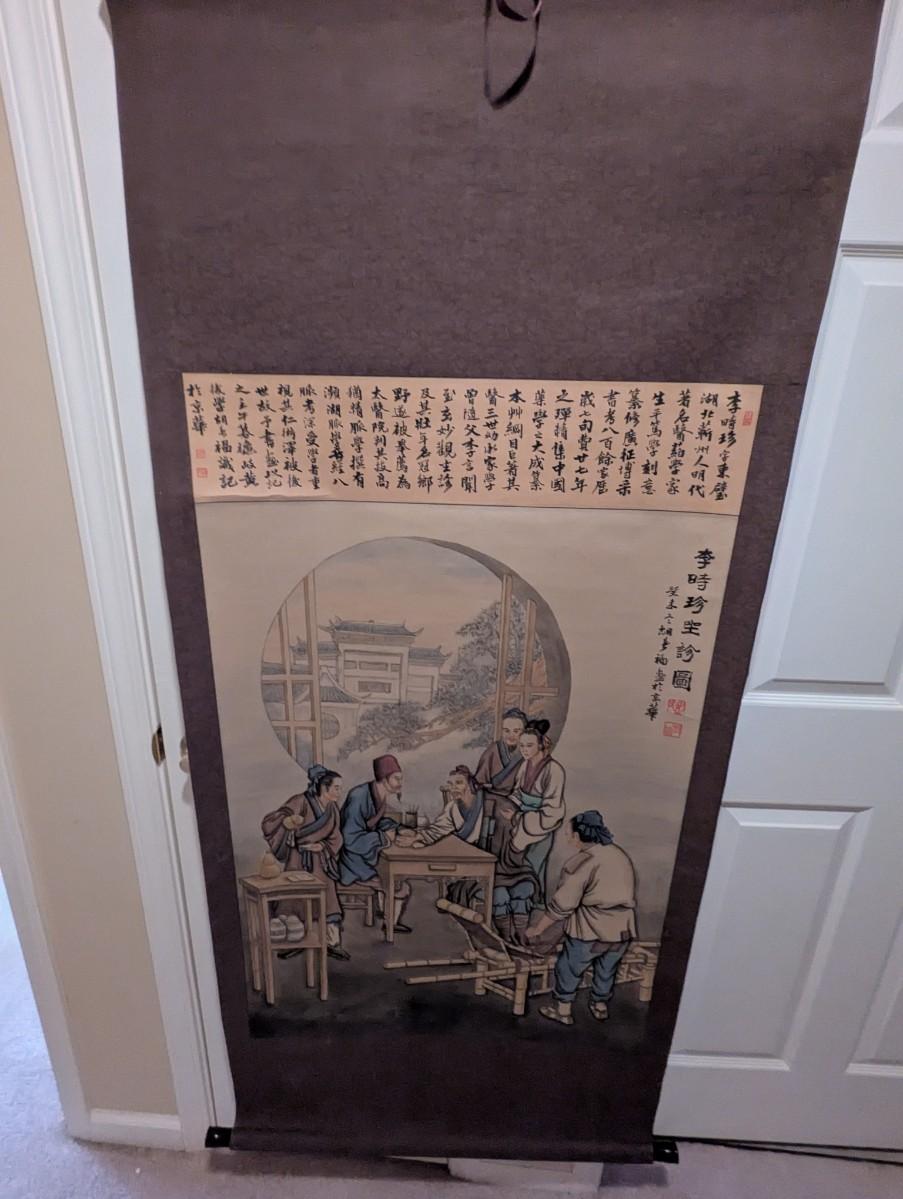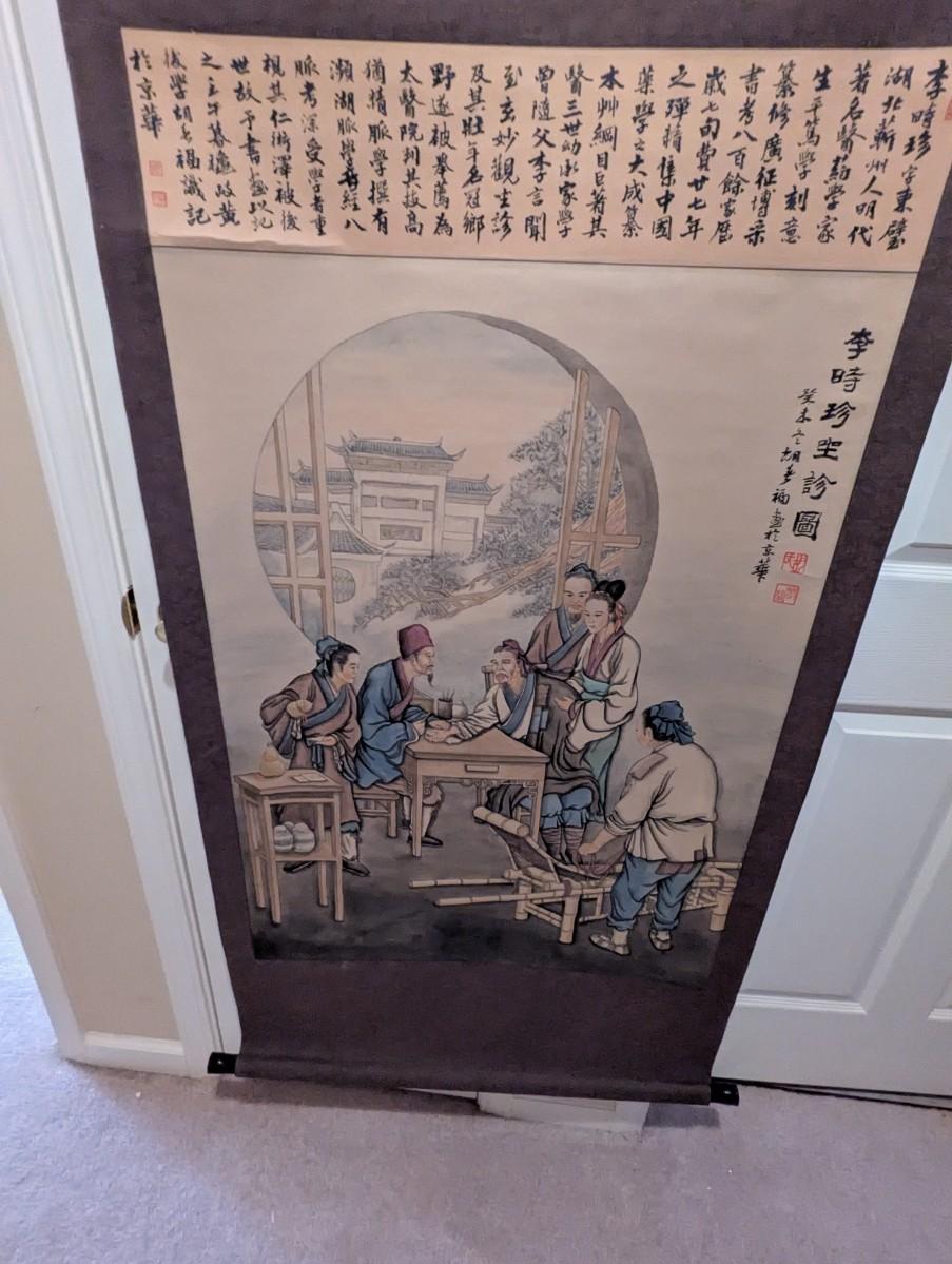28 1/2" x 65" Antique Chinese Painting On Silk & Paper With Artist Mark & Calligraphy