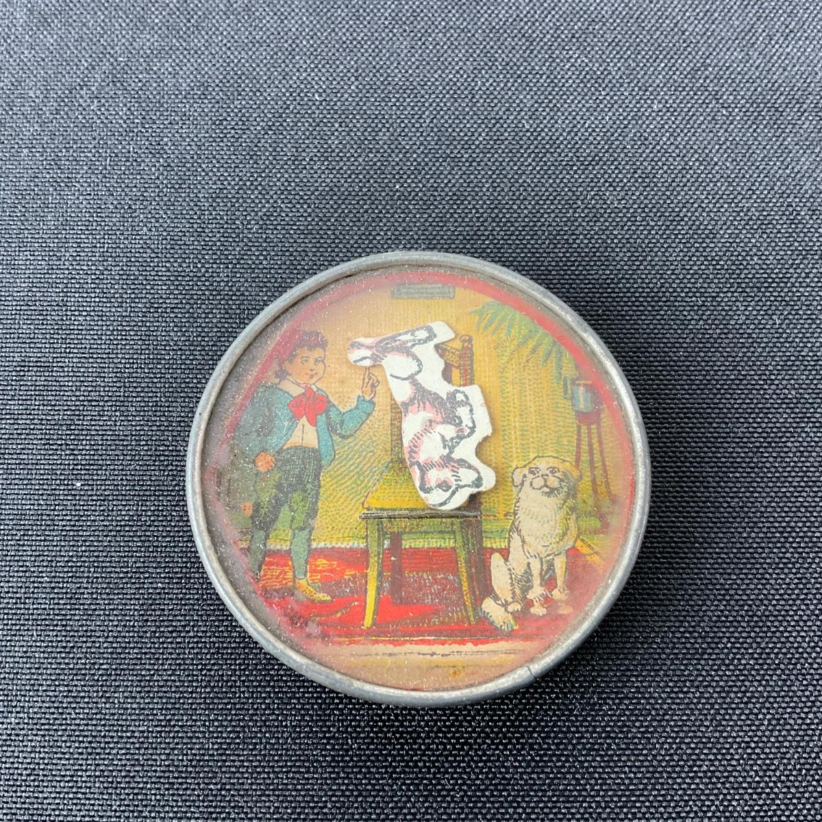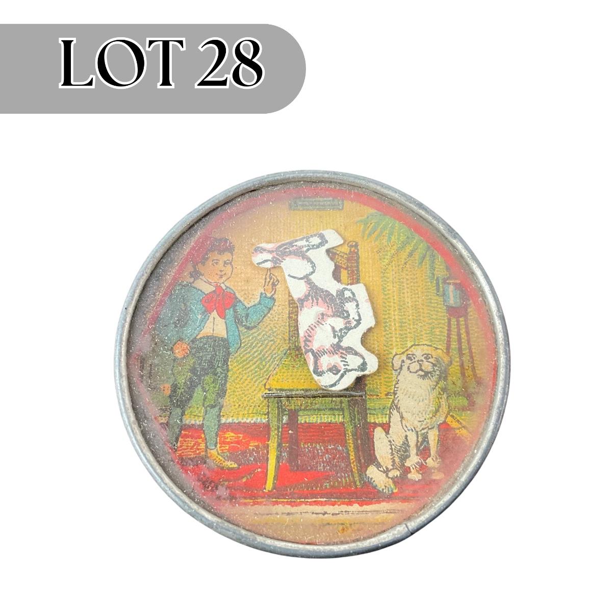 -28- ANTIQUE | Small Hand Held Game | Dog On Chair