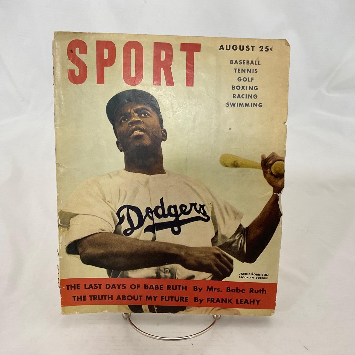 One 1949 Sports Magazine with Jackie Robinson cover. Magazine does have some slight damage as pictured. Please see photos for details and condition. ::: Shipping is available on this lot. If you require shipping you must let us know at the close of the auction. We will coordinate with you after the item has been won. Shipping fees will include insurance up to or exceeding the value of all items being mailed. If you have any questions regarding this lot please contact the auctioneer either via this website, by direct email or by phone. PICK UP TIMES and other important information can be found in the TERMS and DESCRIPTION of the auction. Please take a look for pertinent information. Thanks!