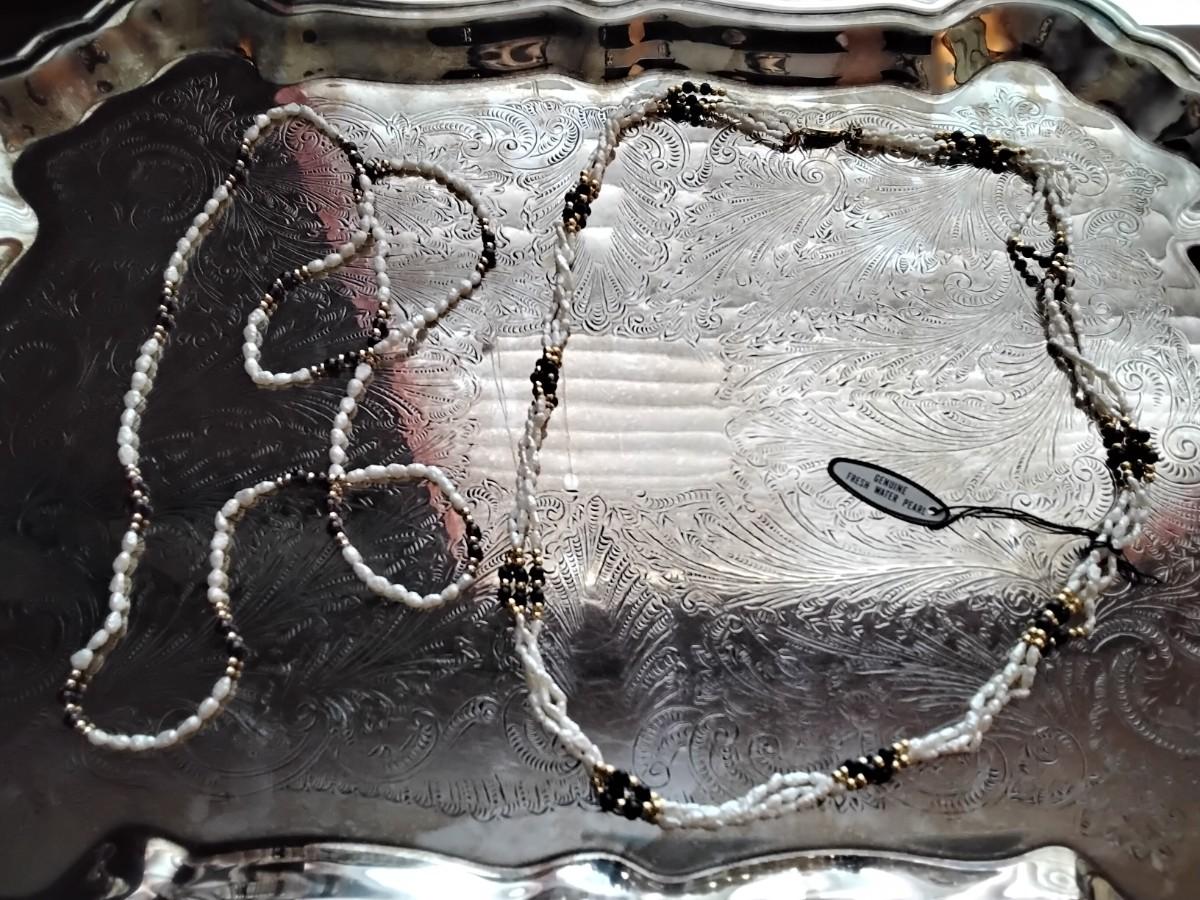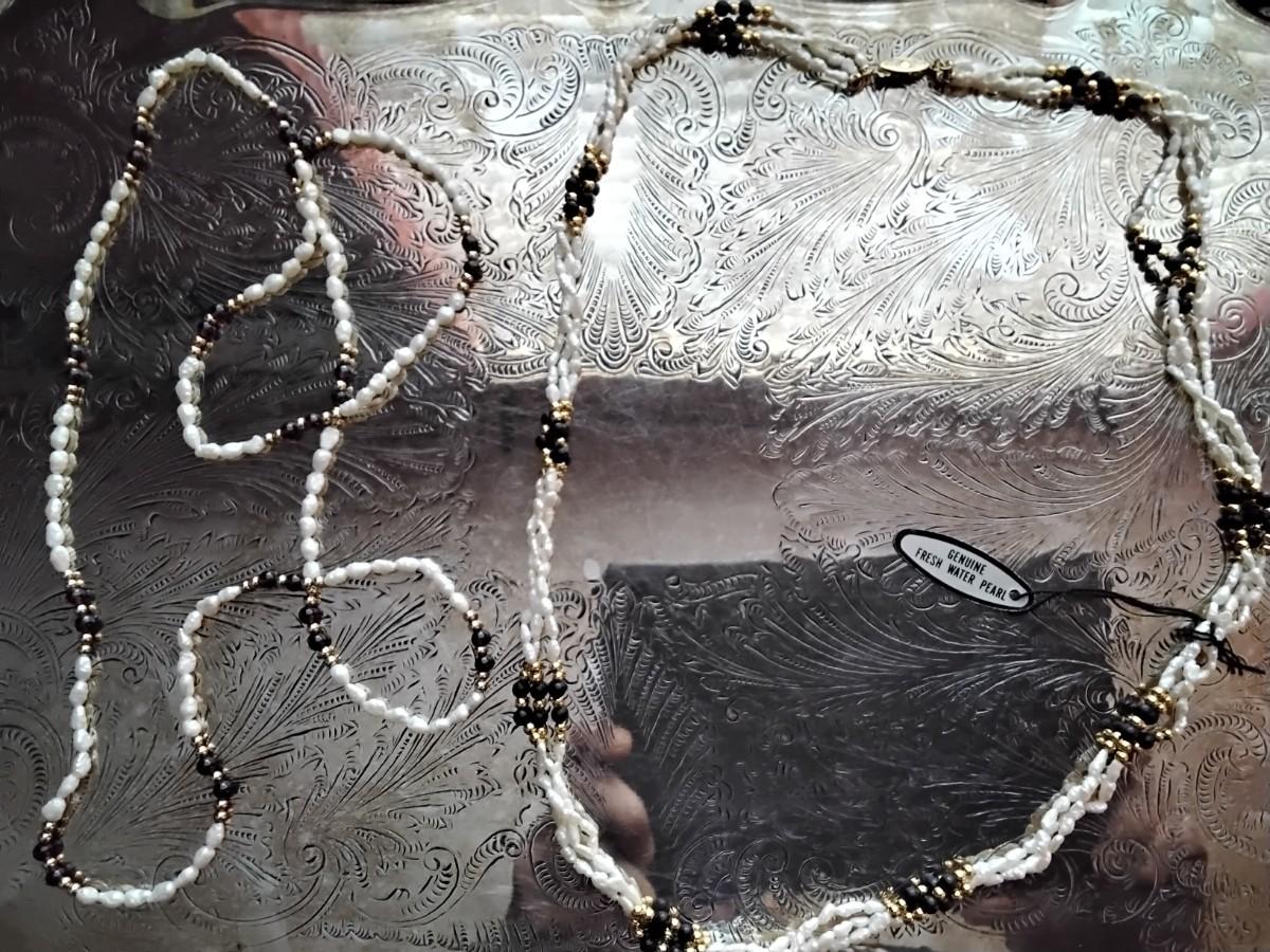 28" Onyx and Pearls with gold bead and 32" Garnet and Pearls  with gold beads Mona So necklaces.