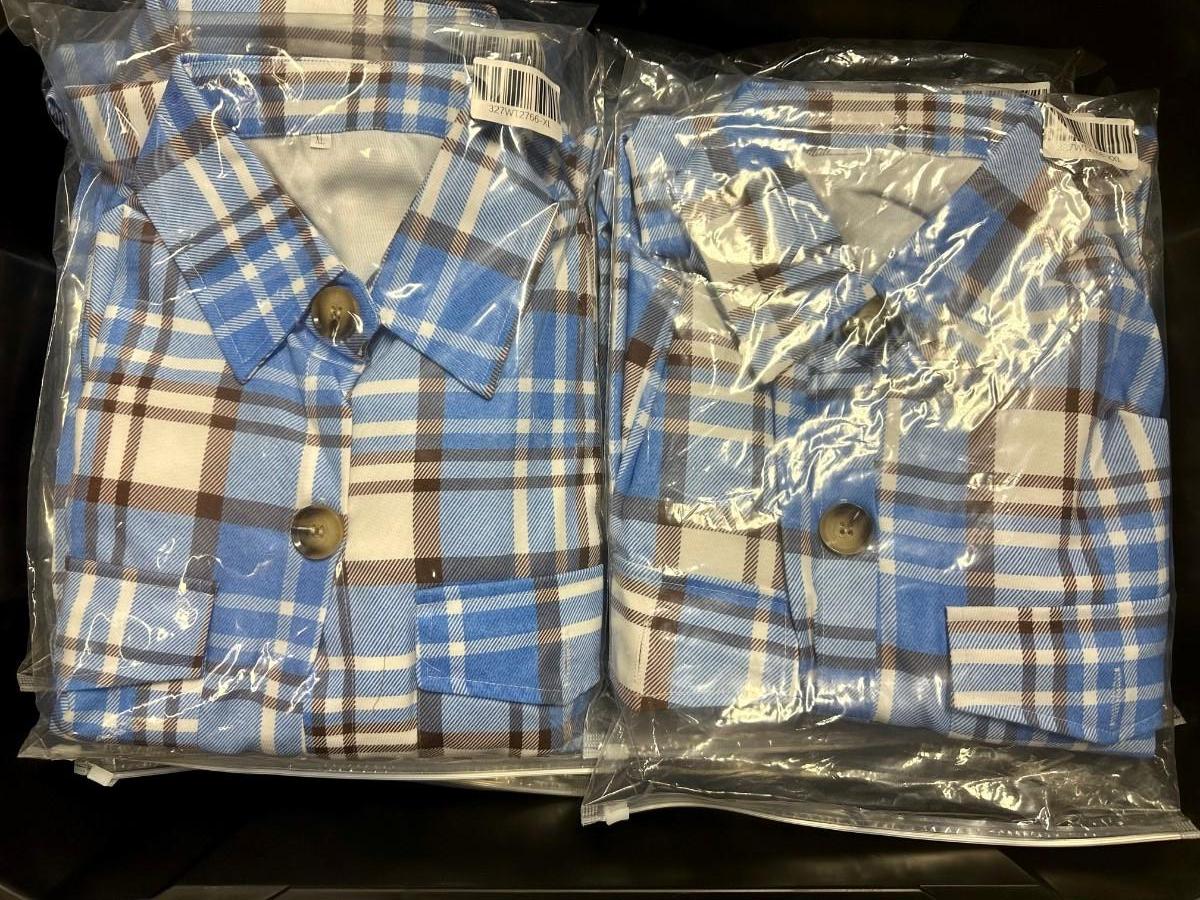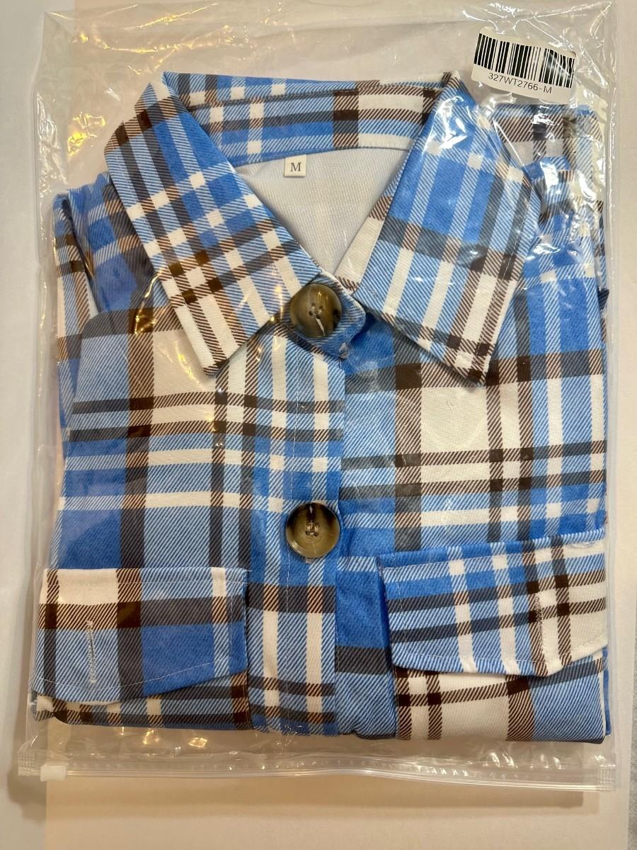 28 Blue & Brown Plaid Light Jackets New in Package Sizes S - XXL