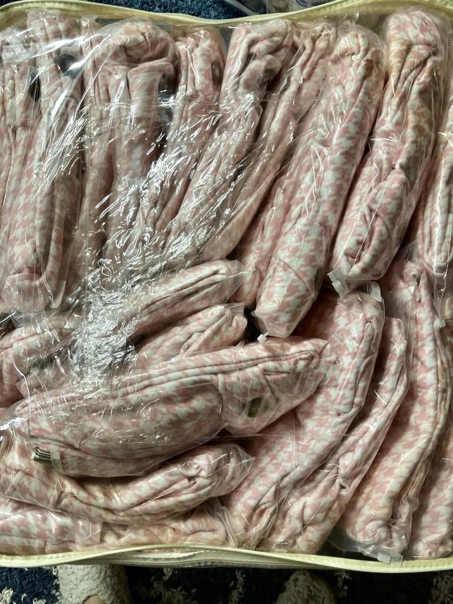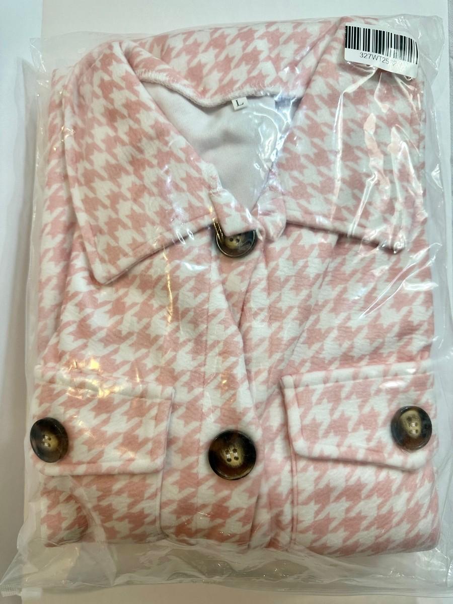 Heavy, long pink houndstooth shacket type jackets. New in packaging.