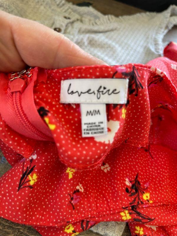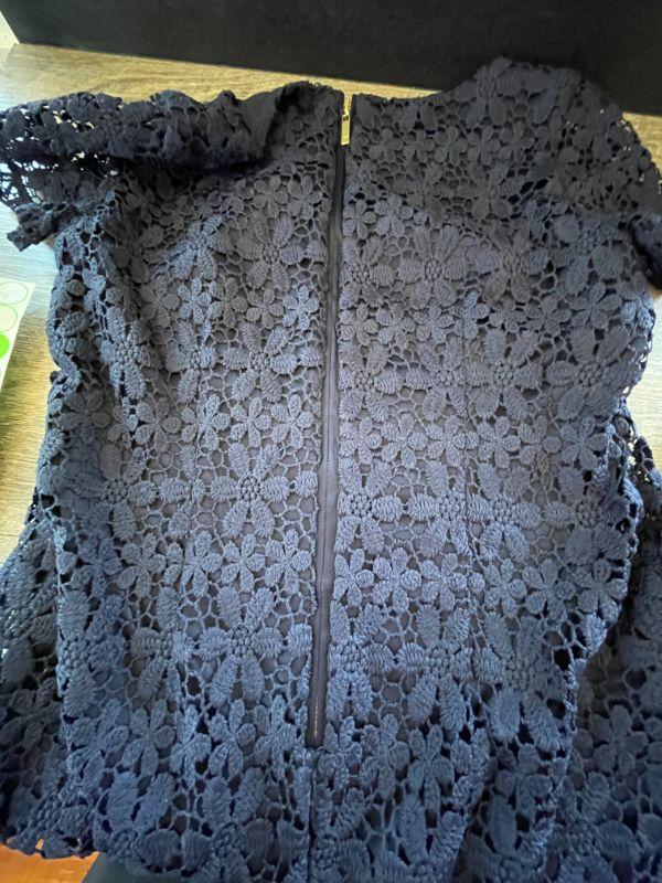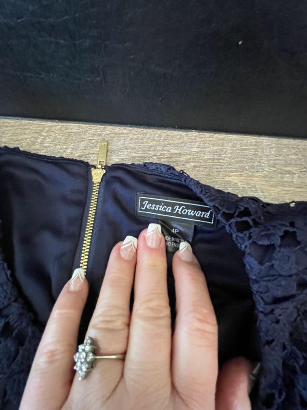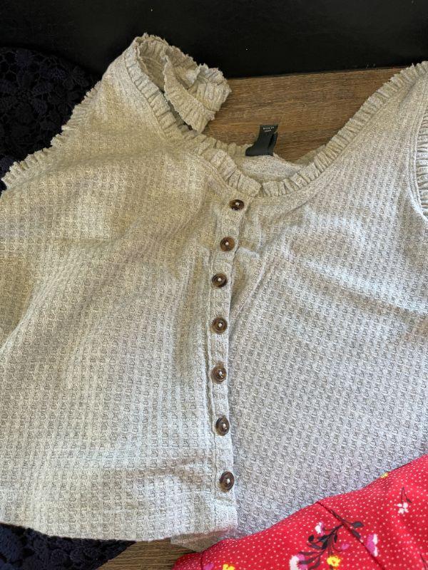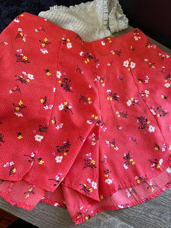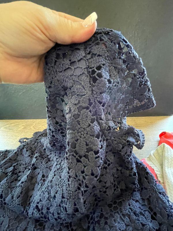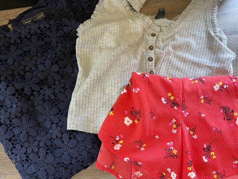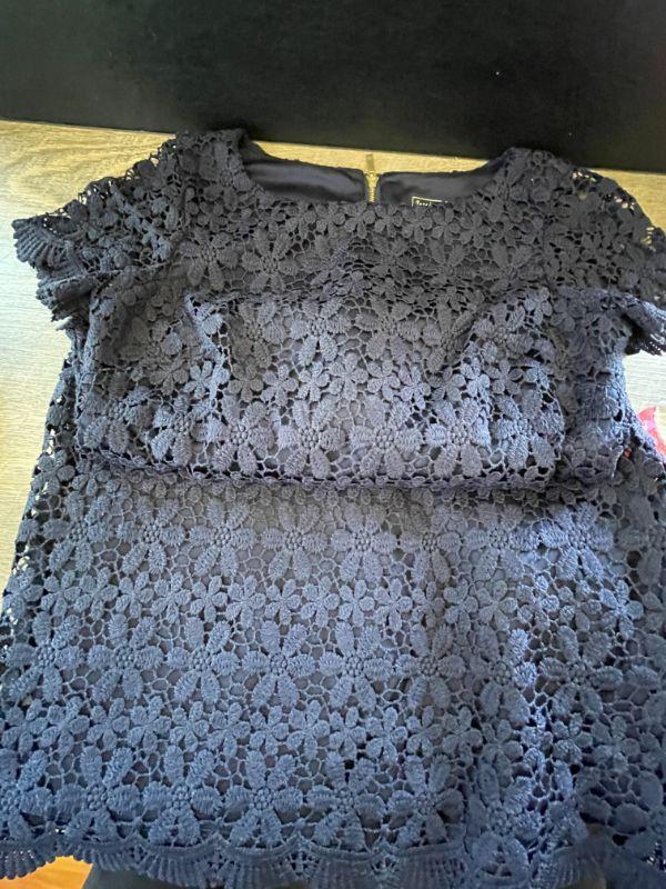 Blue short sleeve 4P dress, knee length. Flowy skort and crop-top. Small/Medium