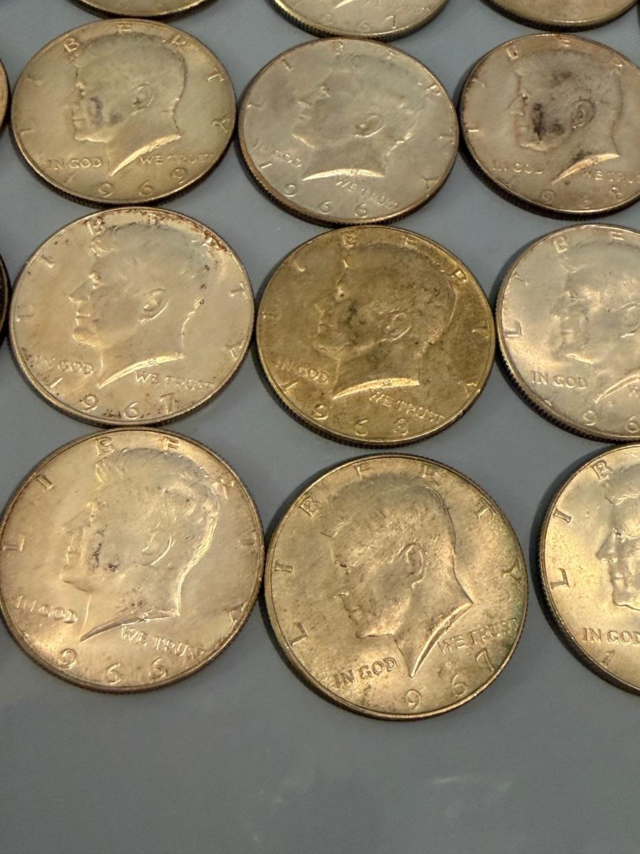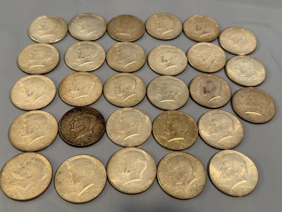28 Kennedy Half Dollars 1965-1969 40% Silver Coins Lot