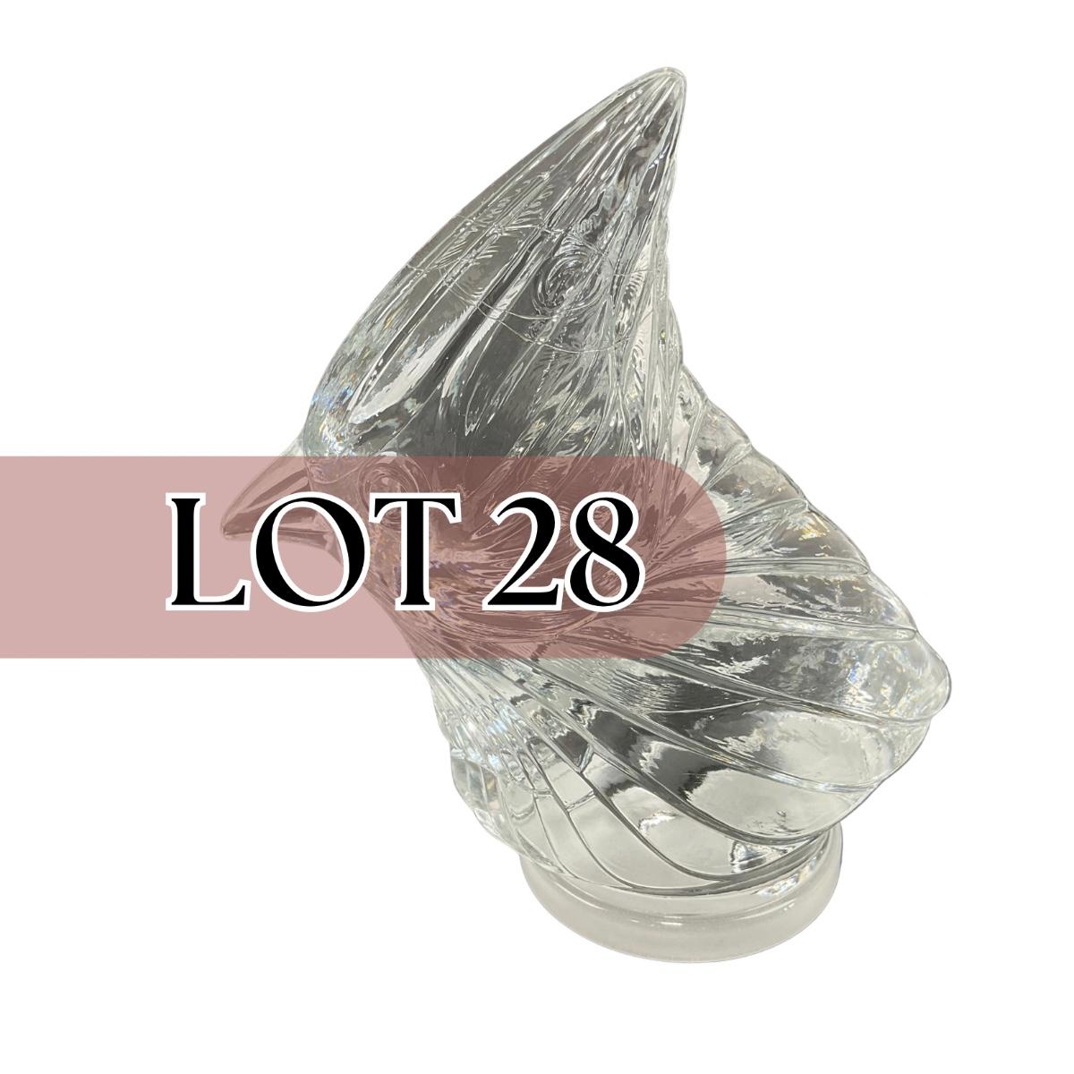 One heavy believed to be Lalique cardinal bird glass radiator mascot hood ornament. This piece does appear to have some straw marks, but otherwise great shape. Please see photos for details and condition. Any condition statement is given as a courtesy to a client, is an opinion, and should not be treated as a statement of fact. Reference to condition written, oral or within a condition report shall not be regarded as a full account of condition and may not include all defects, alterations, or restorations. Absence of a condition report does not imply a lot is flawless or lacking imperfections or damage. Katherine’s Auction & Appraisal Service shall have no responsibility for any error or omission. Returns shall not be accepted on the basis of condition. ::: Shipping is available on this lot. If you require shipping you must let us know at the close of the auction. We will coordinate with you after the item has been won. Shipping fees will include insurance up to or exceeding the value of all items being mailed. If you have any questions regarding this lot please contact the auctioneer either via this website, by direct email or by phone. PICK UP TIMES and other important information can be found in the TERMS and DESCRIPTION of the auction. Please take a look for pertinent information. Thanks!