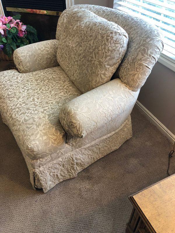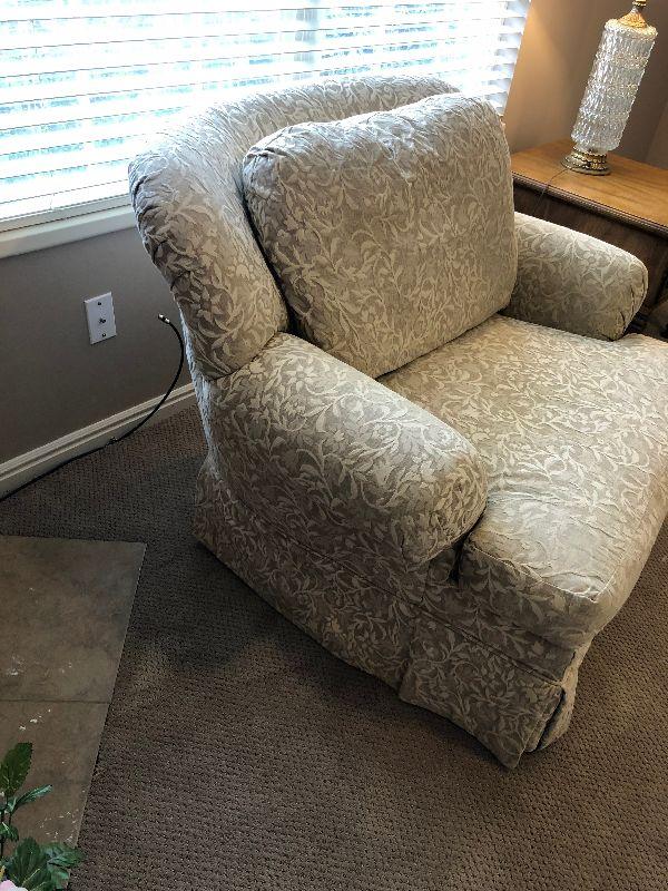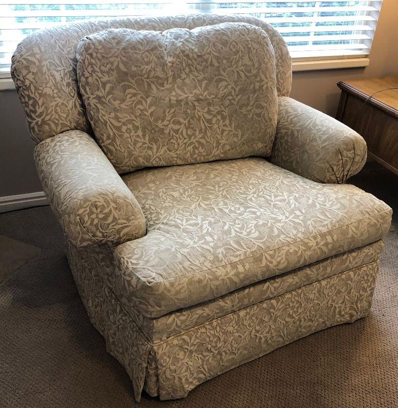 #28 Overstuffed Chair, Damask Fabric by ROWE