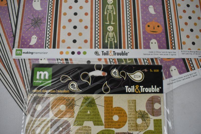 28 pc Halloween Scrapbooking/Paper Crafting: Making Memories "Toil & Trouble" 25 Sheets Double Sided Patterned Cardstock & 3 packages Alpha Stickers - New
