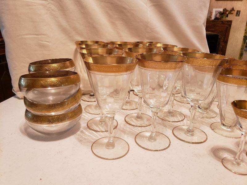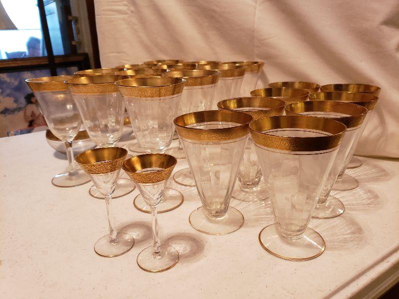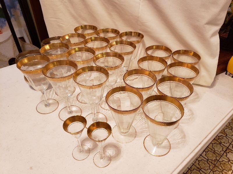 Vintage 28 Piece Gold Rimmed Glass Collection