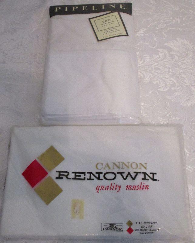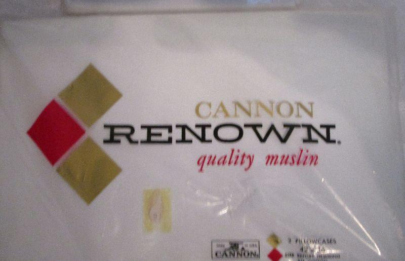 Two sets of King size pillowcases; Cannon Renowin quality muslin all cotton pillowcases 42"x36" (size before hemming); Utica Pipeline 180 percale no-iron pillowcases finished size 20"x40"