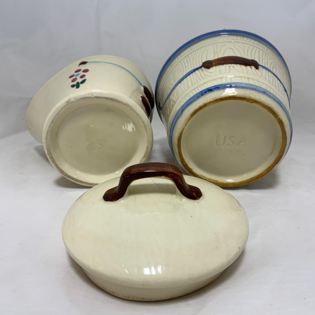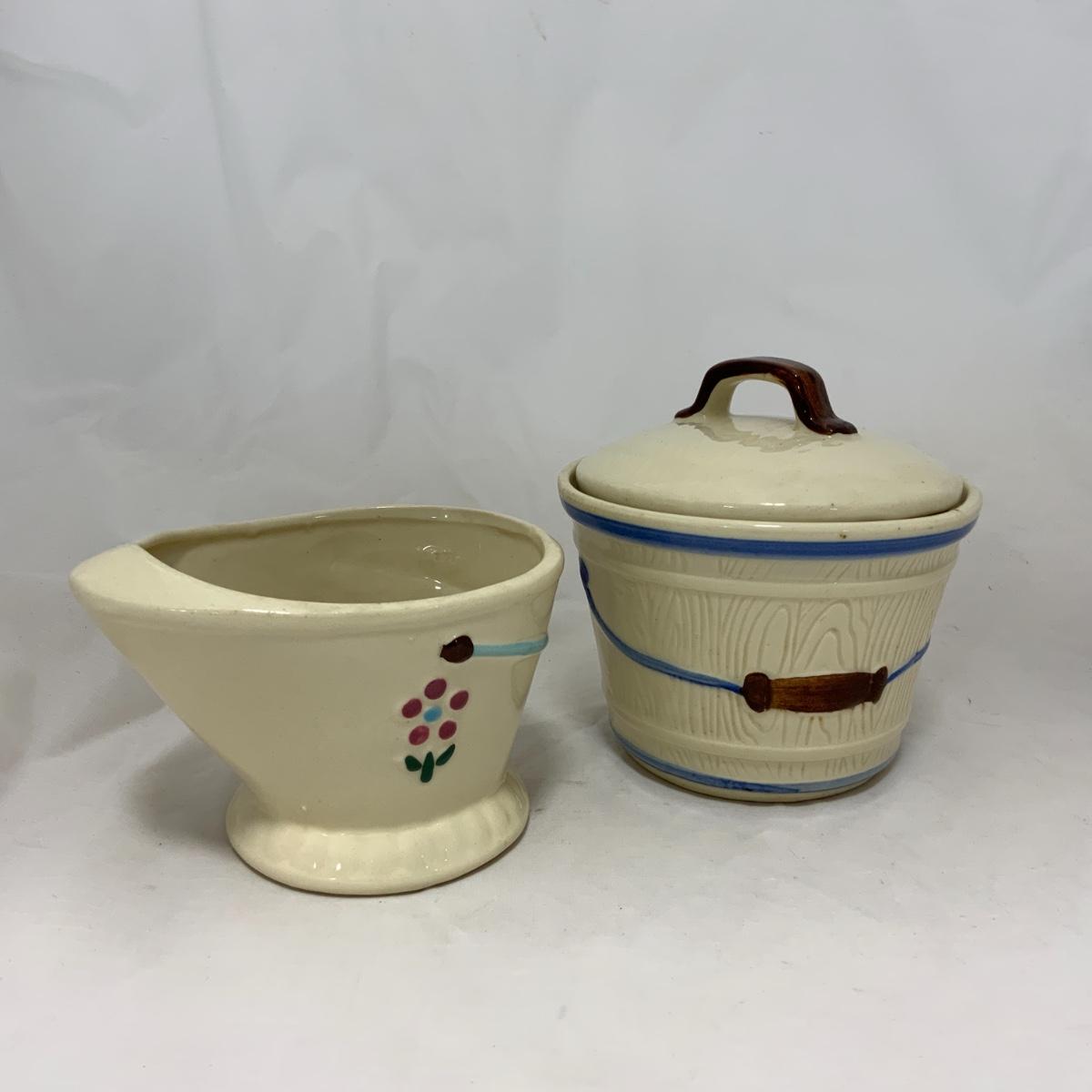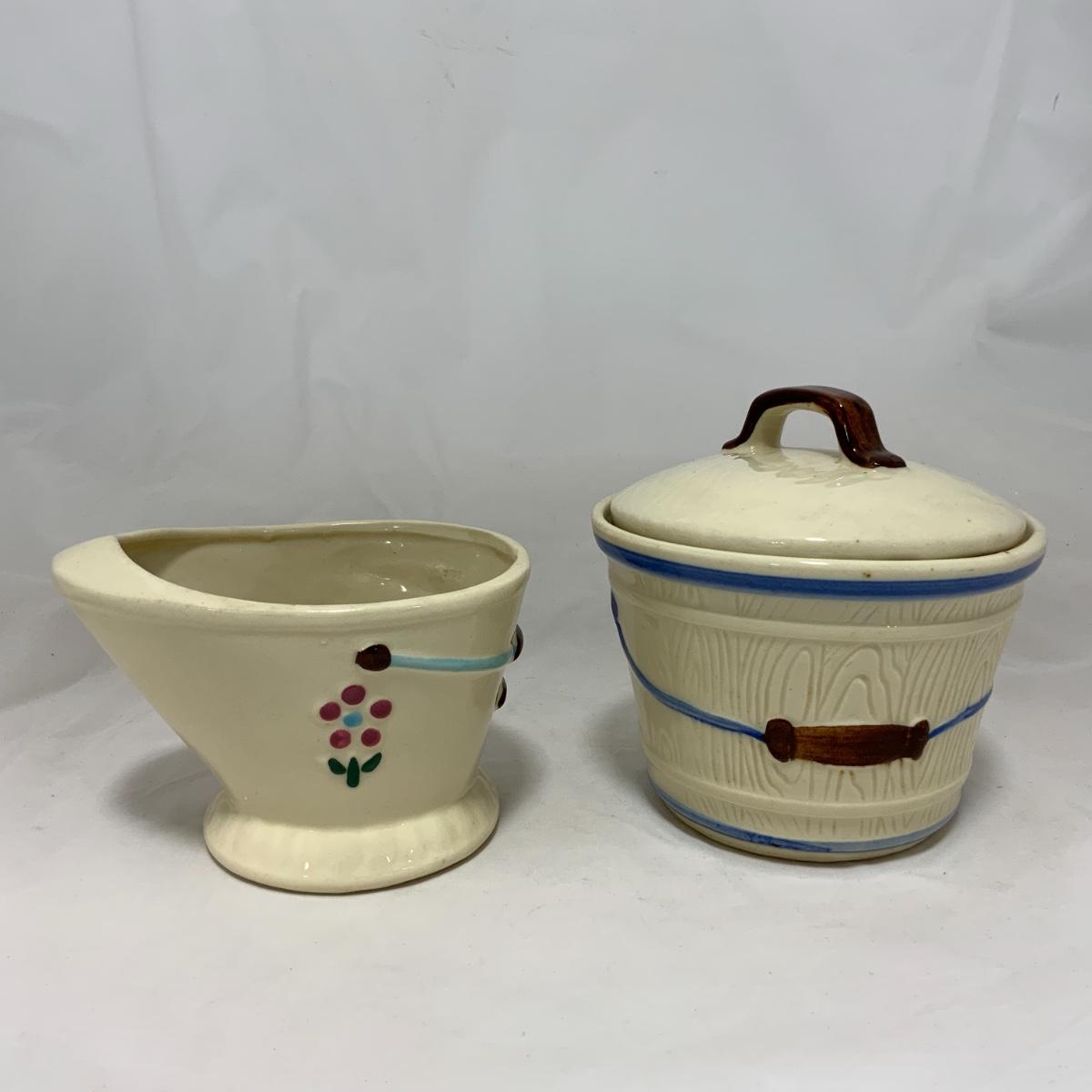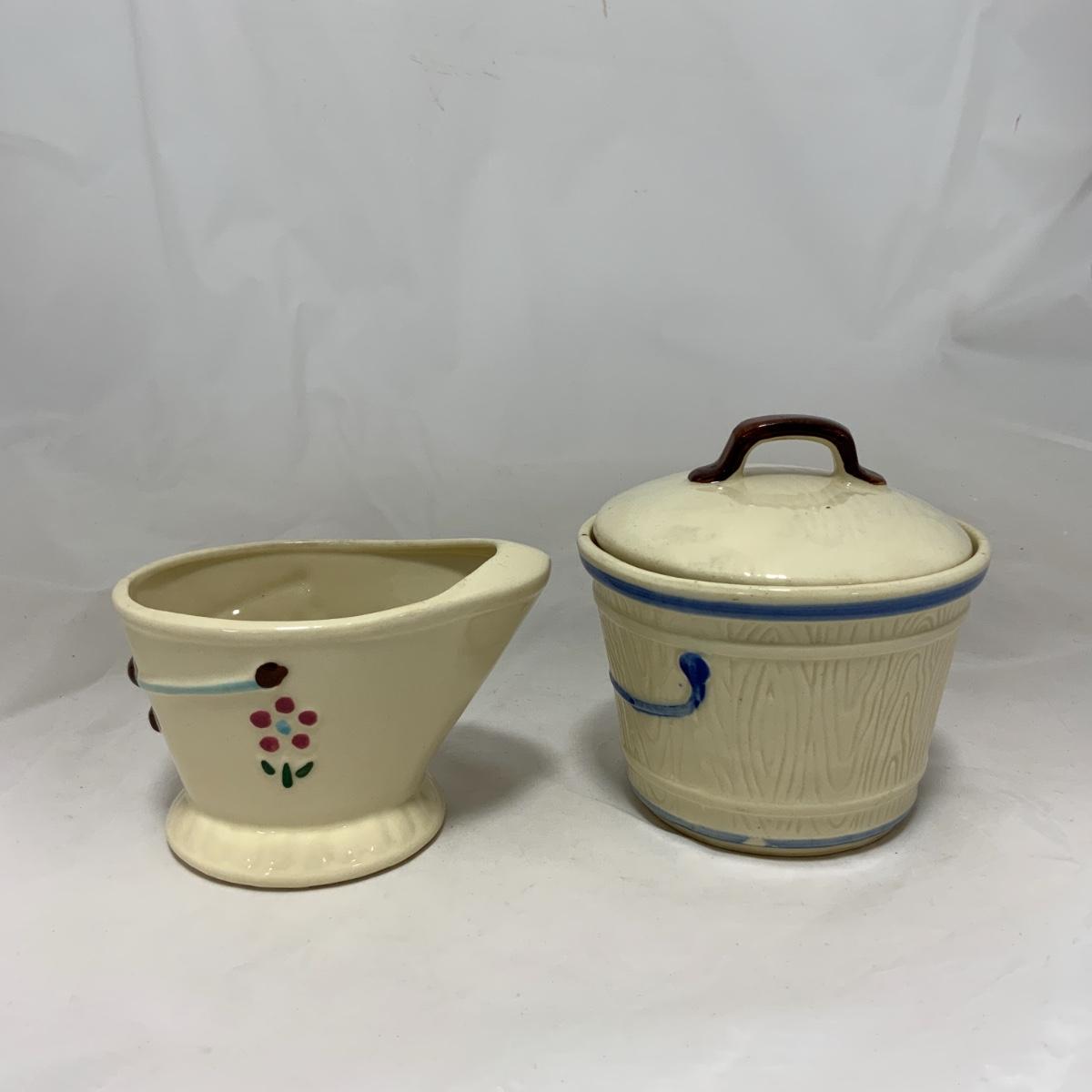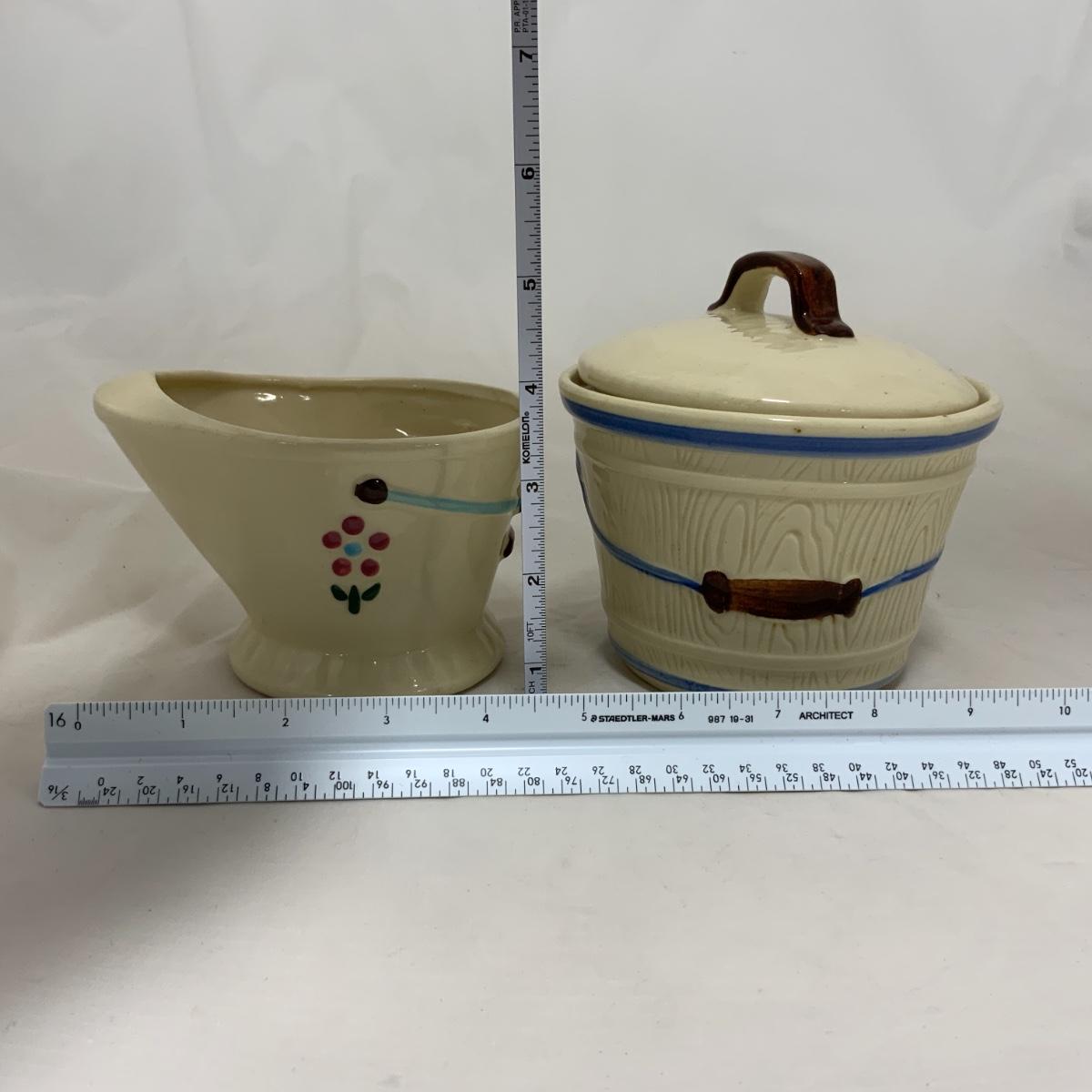 From the Estate of Peter and Alice Radovanovich: Shawnee Pottery pieces. A Covered Bucket Grease Jar and a Coal Pail Planter. Both in exceptional condition. Please see photos for details and condition. ::: Shipping is available on this lot. If you require shipping you must let us know at the close of the auction. We will coordinate with you after the item has been won. Shipping fees will include insurance up to or exceeding the value of all items being mailed. If you have any questions regarding this lot please contact the auctioneer either via this website, by direct email or by phone. PICK UP TIMES and other important information can be found in the TERMS and DESCRIPTION of the auction. Please take a look for pertinent information. Thanks!