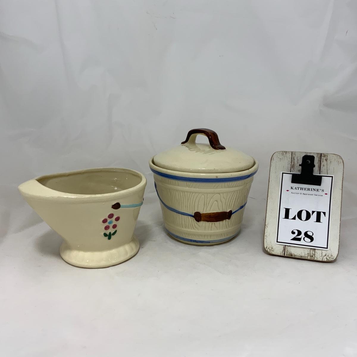-28- SHAWNEE | 1940s | Covered Bucket Grease Jar | Coal Pail Planter