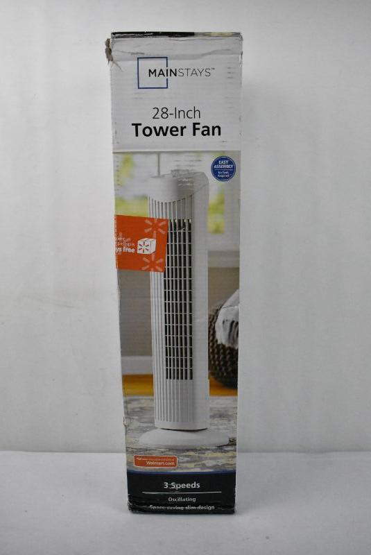 28" Tower Fan, 3 Speeds, Oscillating - New