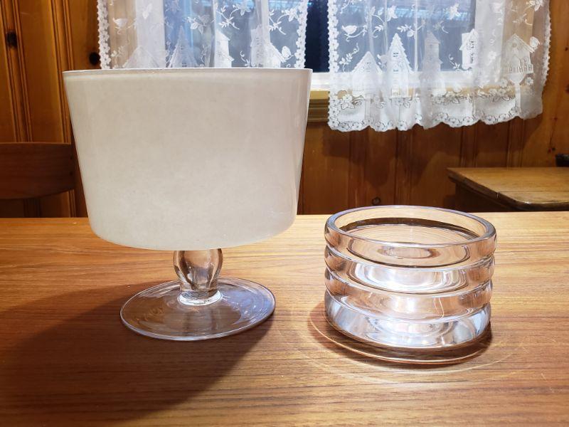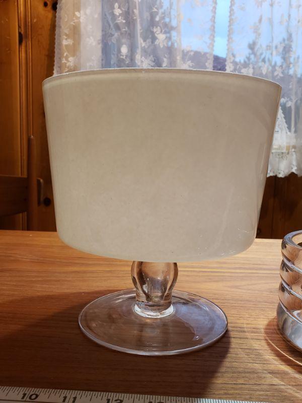 2-80: White Glass Pedestal Bowl and Ribbed Crystal Bowl