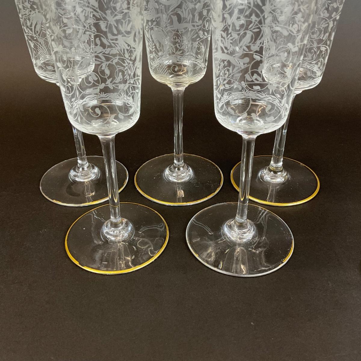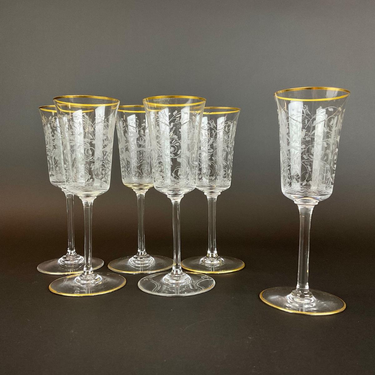 280 Baccarat “Jasmina” Pattern Set of 6 Wine Stems Blown Glass