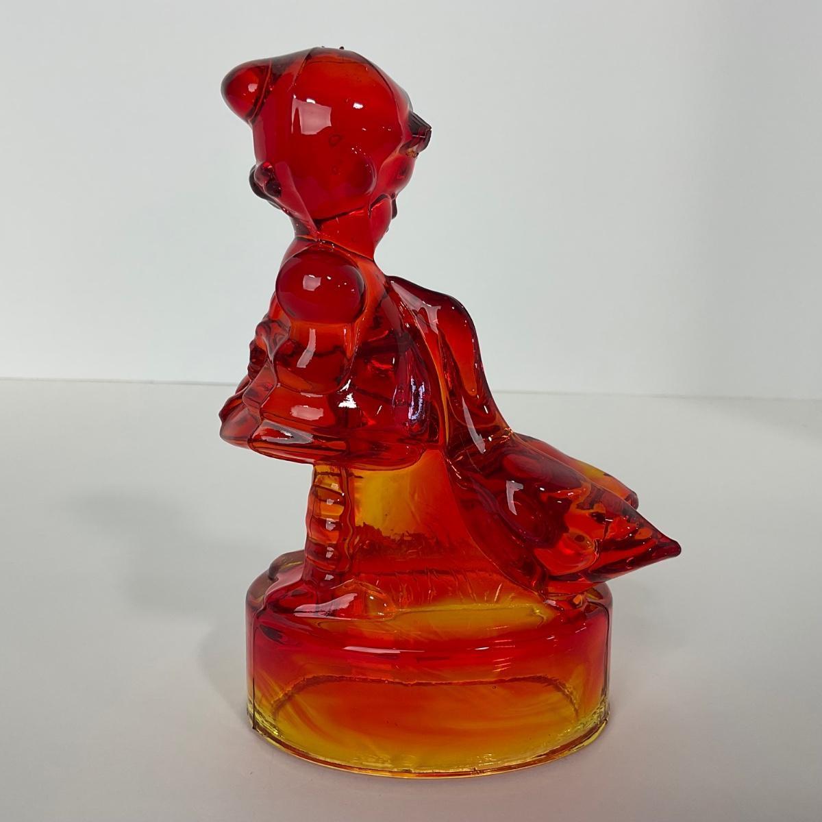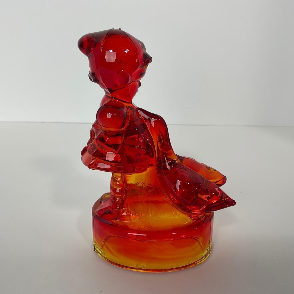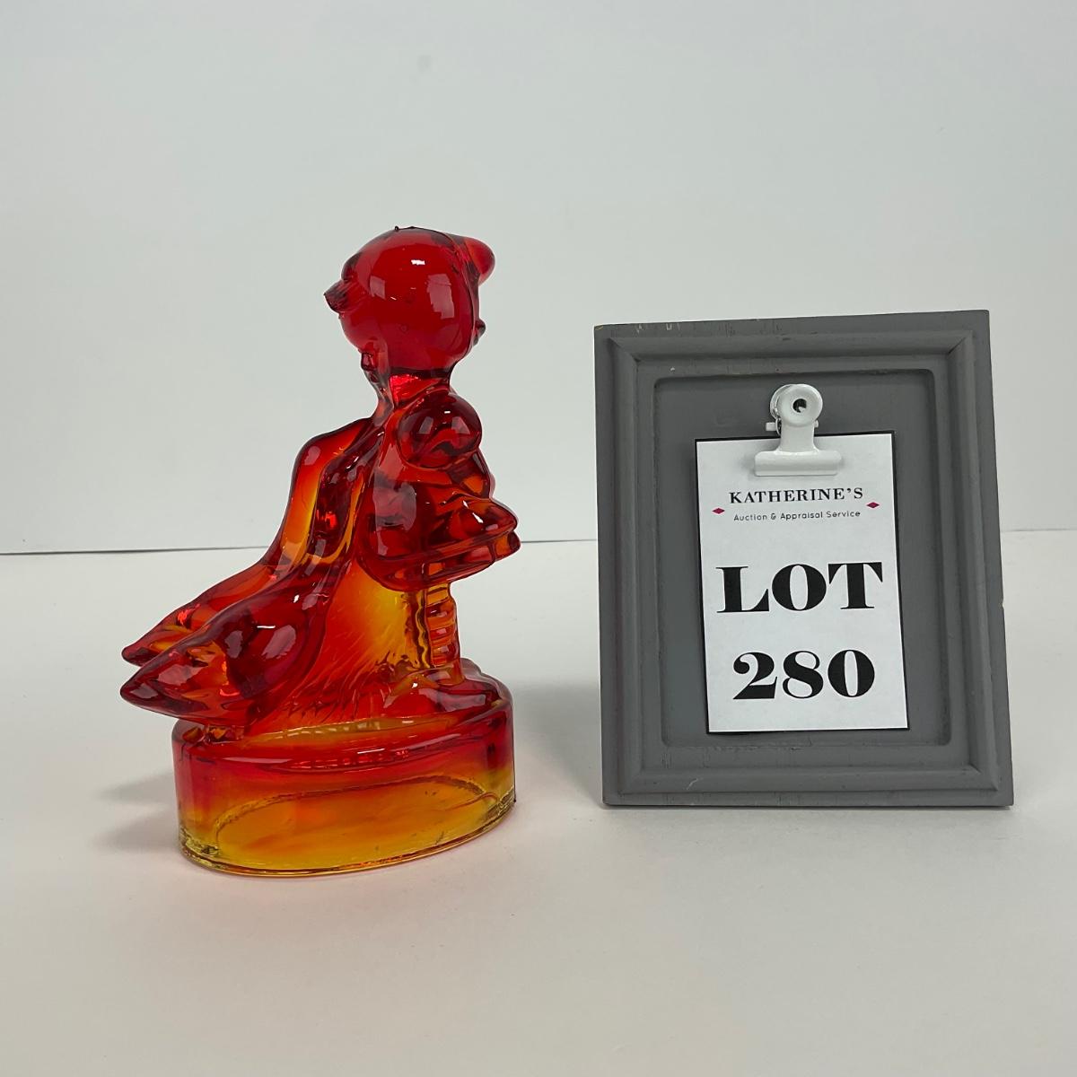 One LE Smith red Amberina goose and girl figure. 4 inches wide by 6 inches tall. This piece does have a large chip damaged part in the front face by the girls hair but otherwise good shape. Please see photos for details and condition. Any condition statement is given as a courtesy to a client, is an opinion, and should not be treated as a statement of fact. Reference to condition written, oral or within a condition report shall not be regarded as a full account of condition and may not include all defects, alterations, or restorations. Absence of a condition report does not imply a lot is flawless or lacking imperfections or damage. Katherine’s Auction & Appraisal Service shall have no responsibility for any error or omission. Returns shall not be accepted on the basis of condition. ::: Shipping is available on this lot. If you require shipping you must let us know at the close of the auction. We will coordinate with you after the item has been won. Shipping fees will include insurance up to or exceeding the value of all items being mailed. If you have any questions regarding this lot please contact the auctioneer either via this website, by direct email or by phone. PICK UP TIMES and other important information can be found in the TERMS and DESCRIPTION of the auction. Please take a look for pertinent information. Thanks!