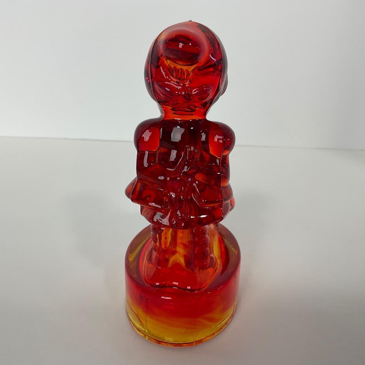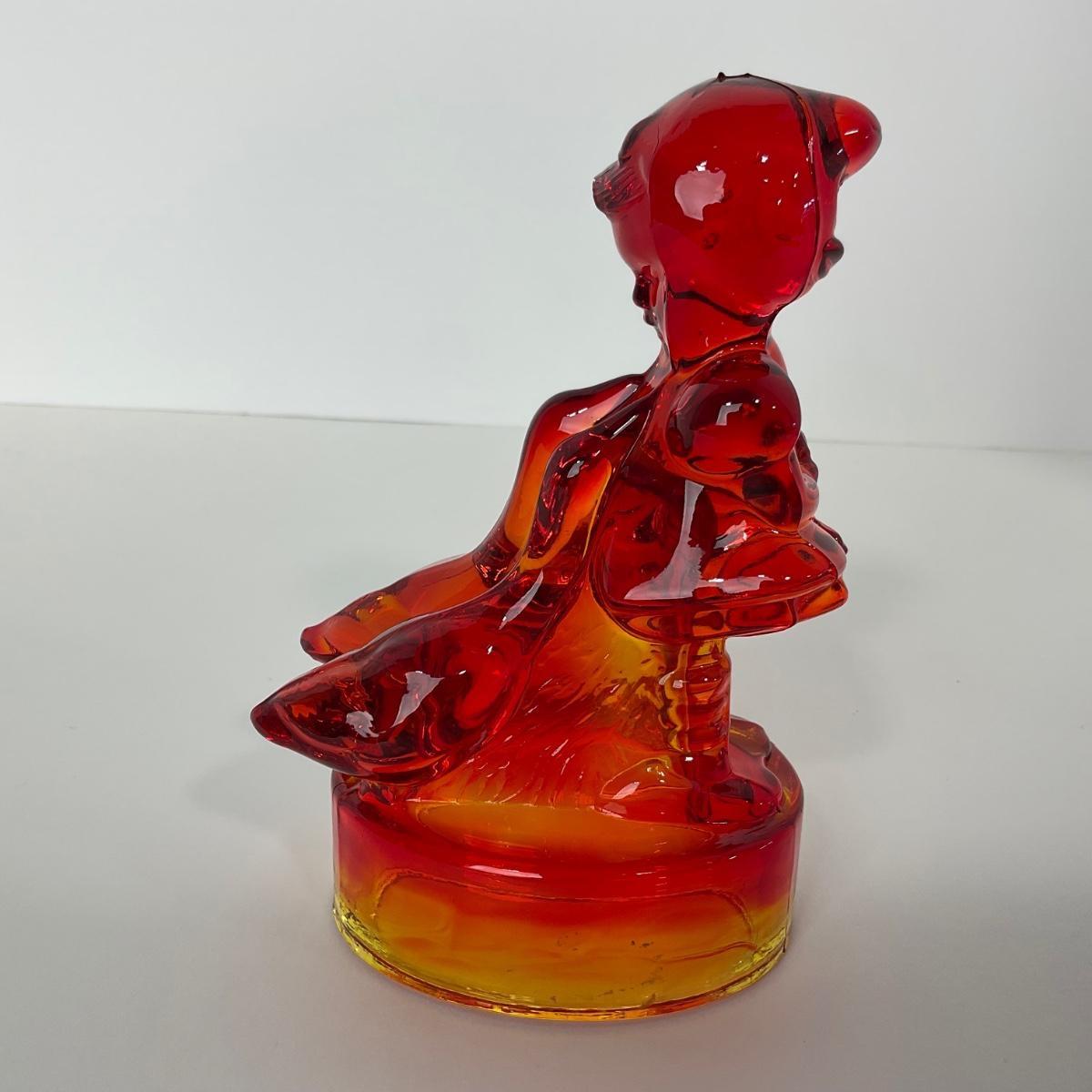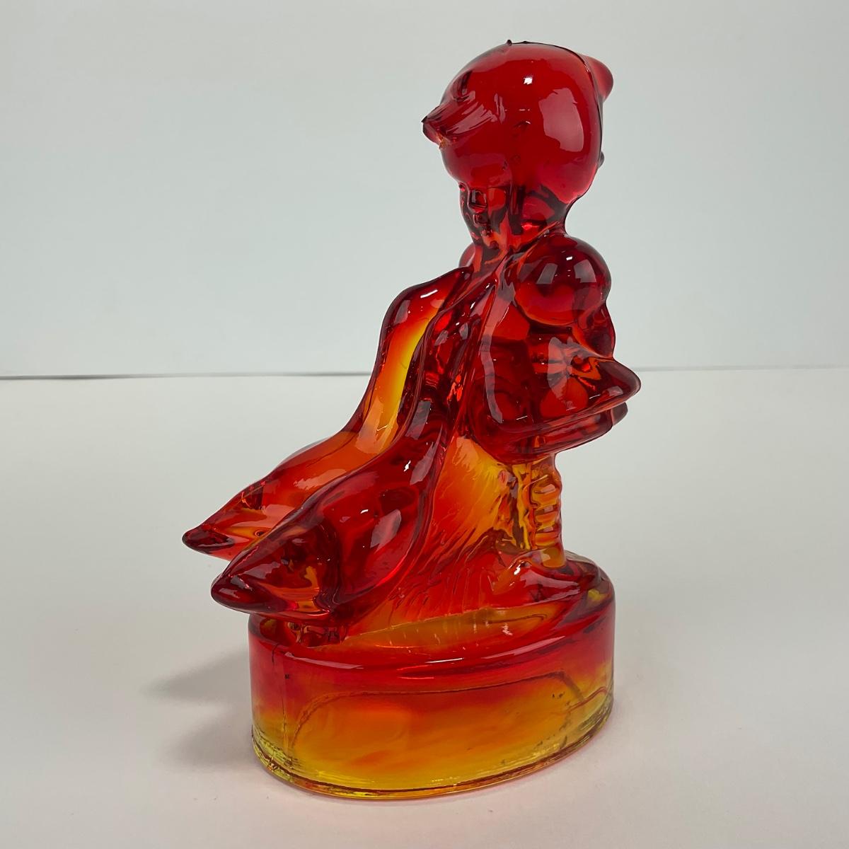 One LE Smith red Amberina goose and girl figure. 4 inches wide by 6 inches tall. This piece does have a large chip damaged part in the front face by the girls hair but otherwise good shape. Please see photos for details and condition. Any condition statement is given as a courtesy to a client, is an opinion, and should not be treated as a statement of fact. Reference to condition written, oral or within a condition report shall not be regarded as a full account of condition and may not include all defects, alterations, or restorations. Absence of a condition report does not imply a lot is flawless or lacking imperfections or damage. Katherine’s Auction & Appraisal Service shall have no responsibility for any error or omission. Returns shall not be accepted on the basis of condition. ::: Shipping is available on this lot. If you require shipping you must let us know at the close of the auction. We will coordinate with you after the item has been won. Shipping fees will include insurance up to or exceeding the value of all items being mailed. If you have any questions regarding this lot please contact the auctioneer either via this website, by direct email or by phone. PICK UP TIMES and other important information can be found in the TERMS and DESCRIPTION of the auction. Please take a look for pertinent information. Thanks!