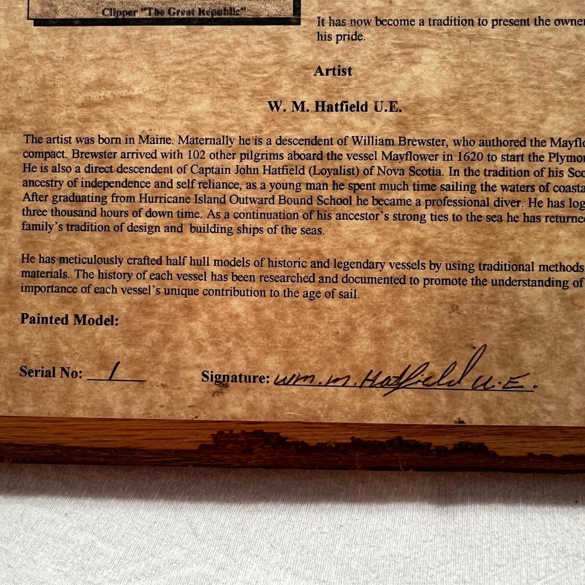 N280 Vintage W.M. Hatfield Clipper “The Great Republic” 1/2 Hull Wood Model