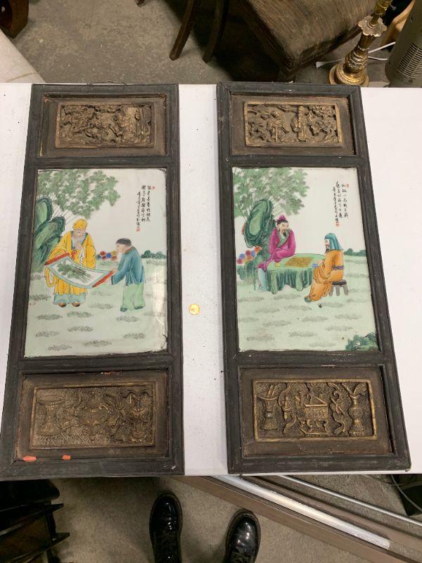 #281 Chinese Headboard Painted Porcelain Tiles