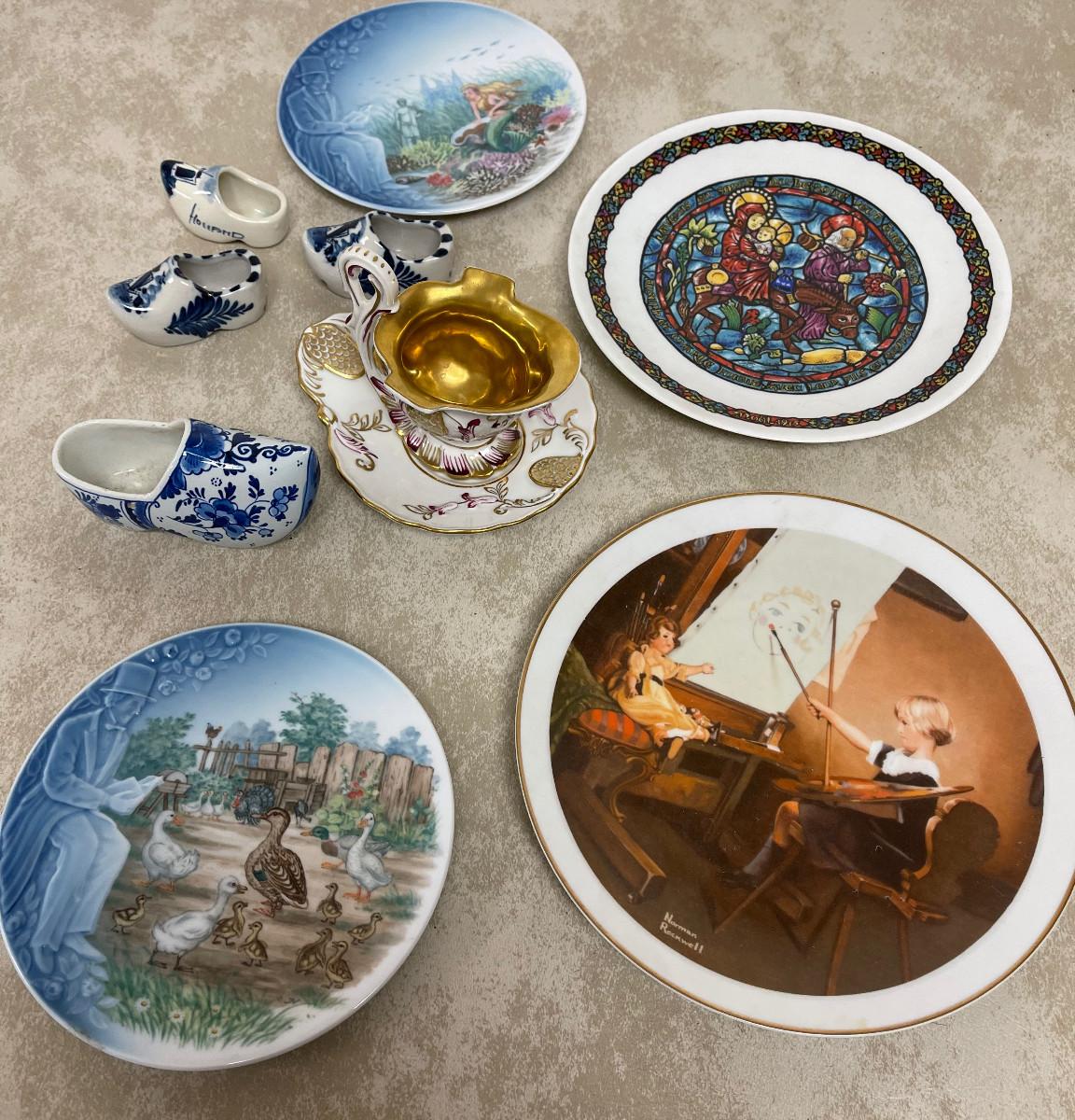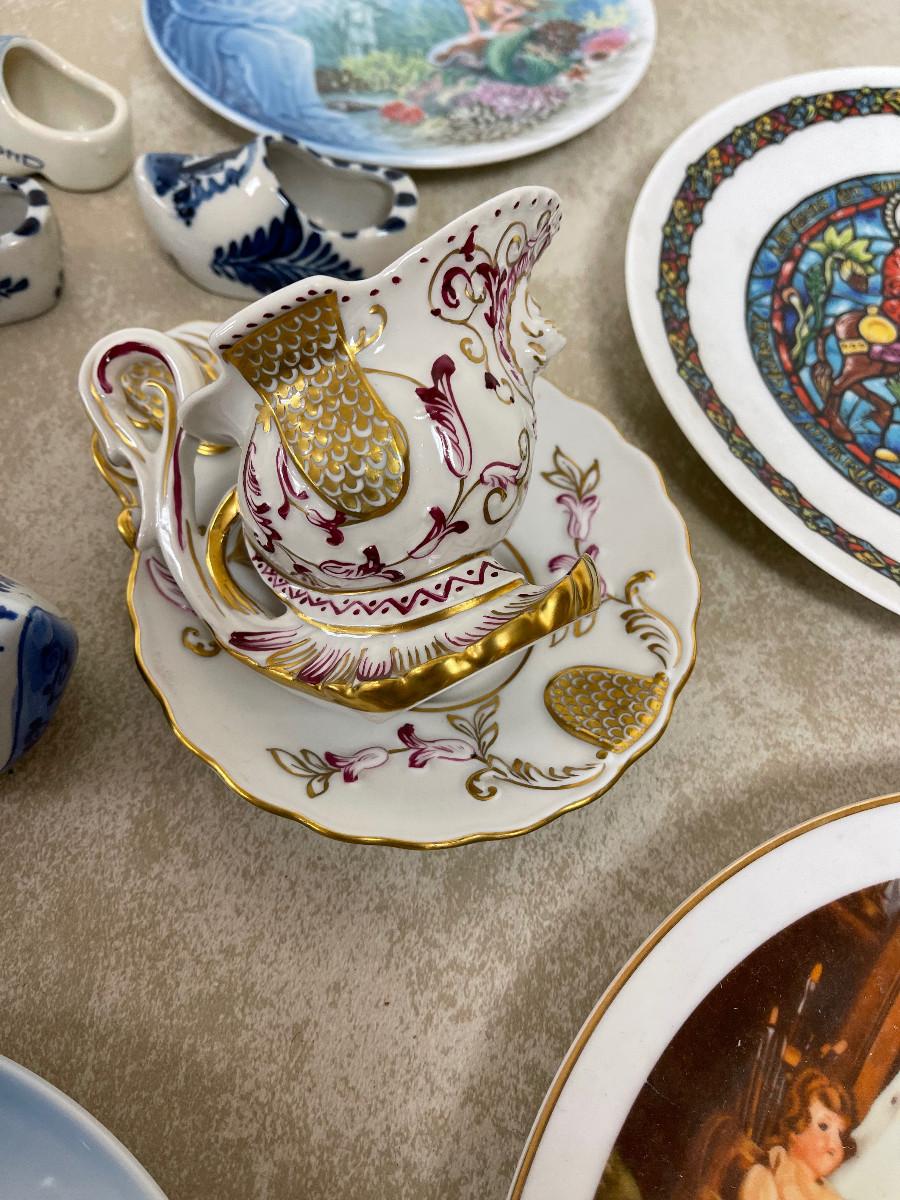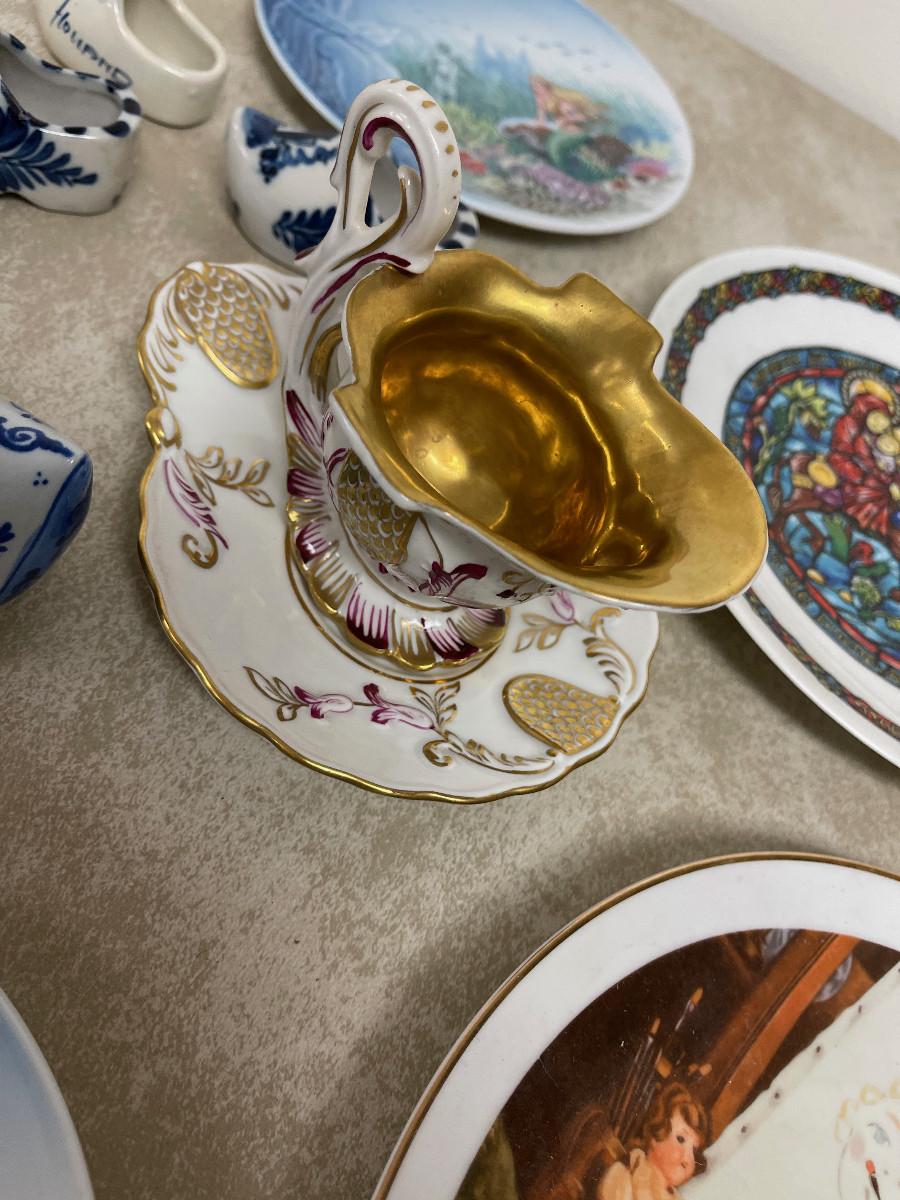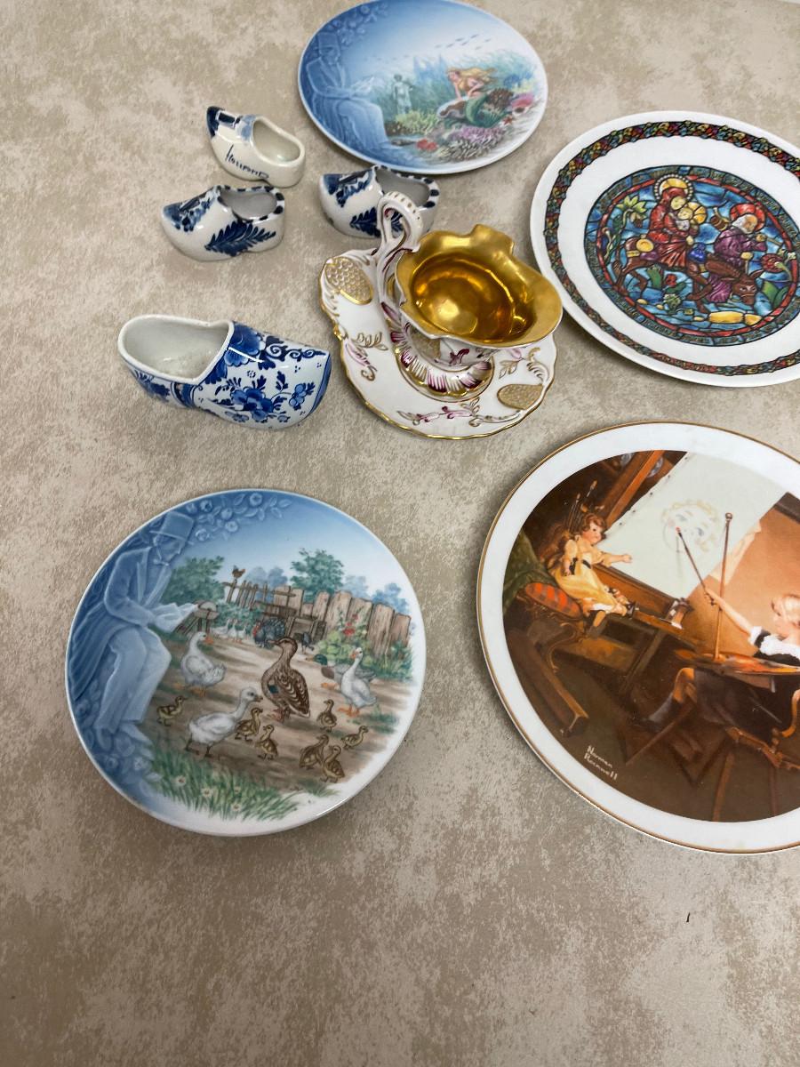 #282 B Delph, Decorated Plates, Gold Cup, Mixed Lot