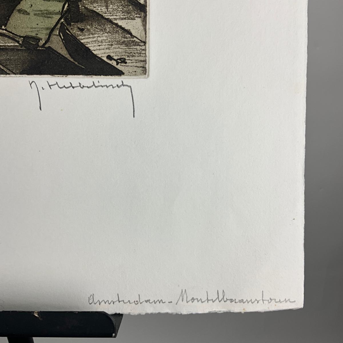 187 Flemish Hand Printed Etching Signed & Numbered #151/350 Image Of Canal Boat By R. Hebbelinck