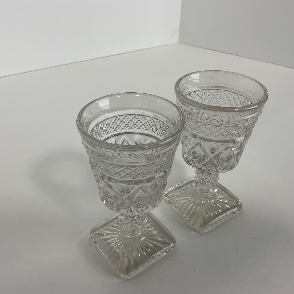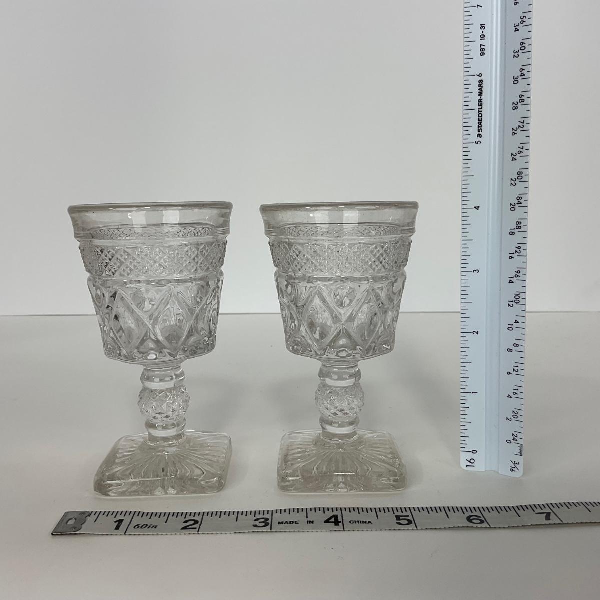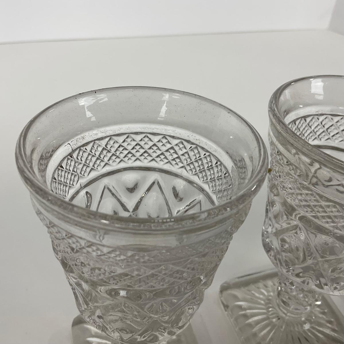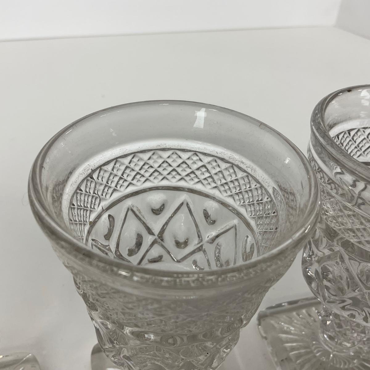 Nine pieces of Cape Cod Imperial Glass Co. (1932-1980) including seven cordials and one salt & pepper set. Please see photos for details and condition. ::: Shipping is available on this lot. If you require shipping you must let us know at the close of the auction. We will coordinate with you after the item has been won. Shipping fees will include insurance up to or exceeding the value of all items being mailed. If you have any questions regarding this lot please contact the auctioneer either via this website, by direct email or by phone. PICK UP TIMES and other important information can be found in the TERMS and DESCRIPTION of the auction. Please take a look for pertinent information. Thanks!