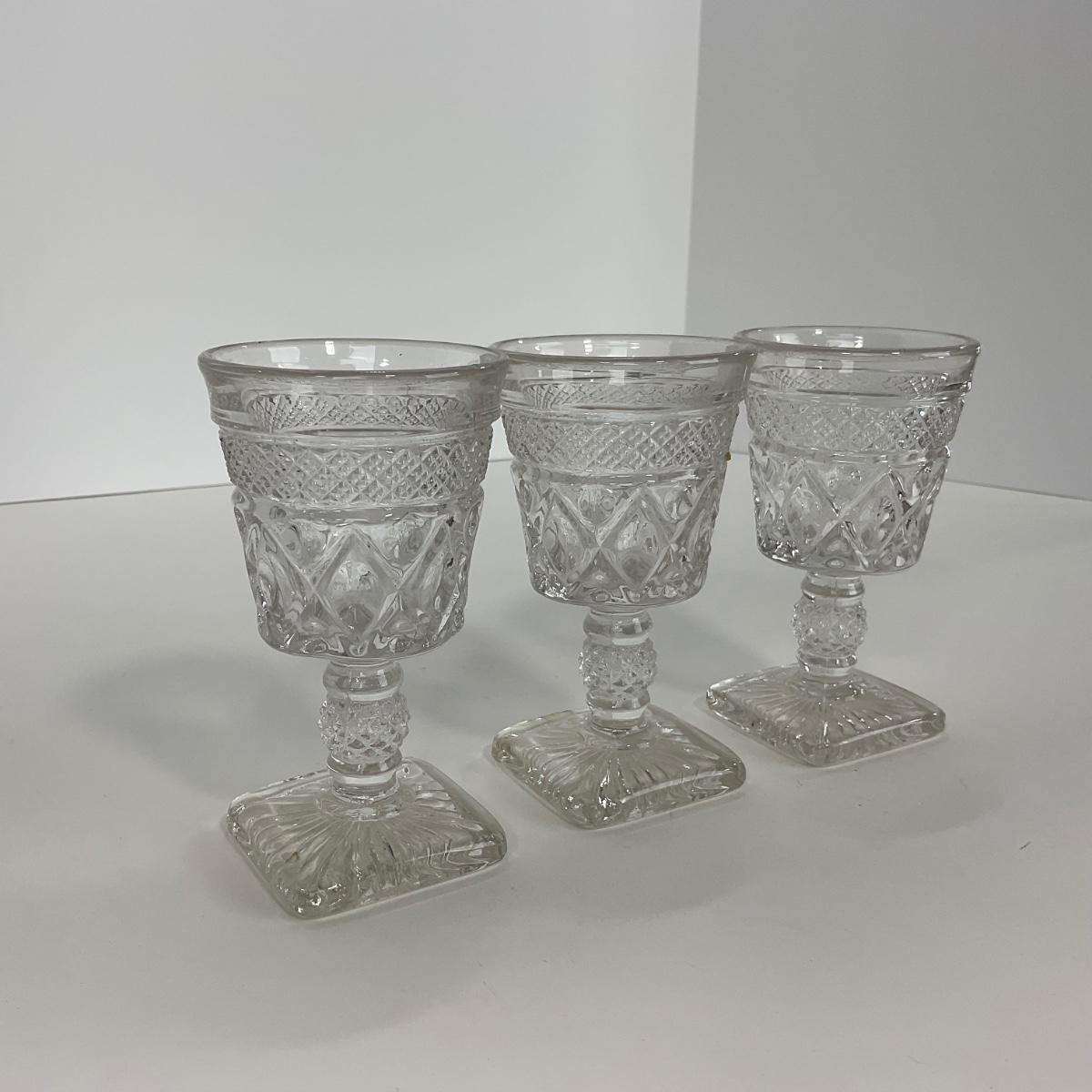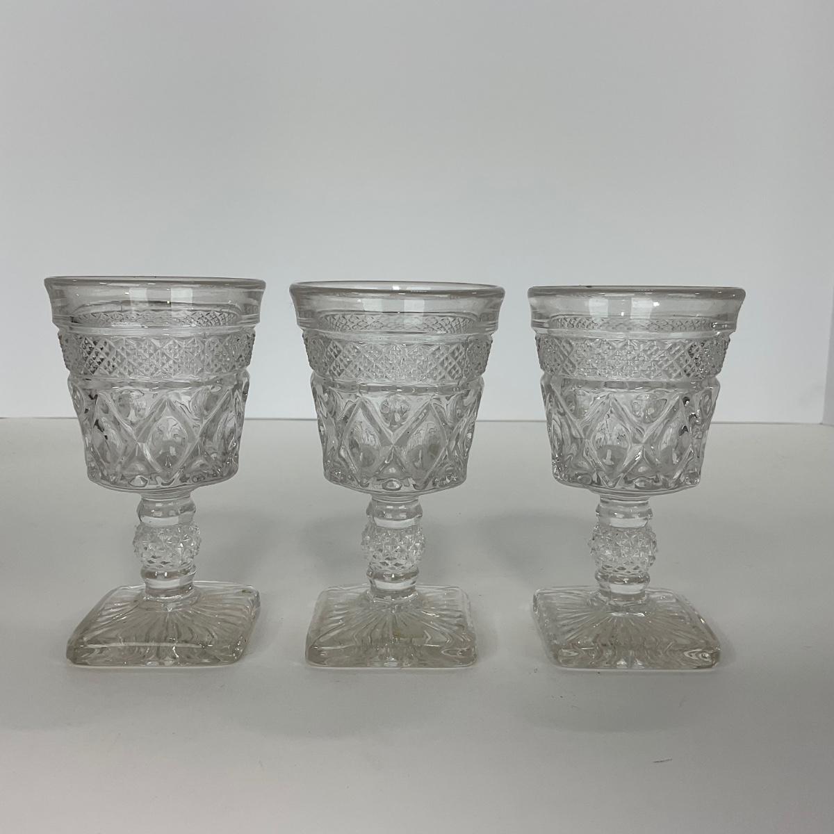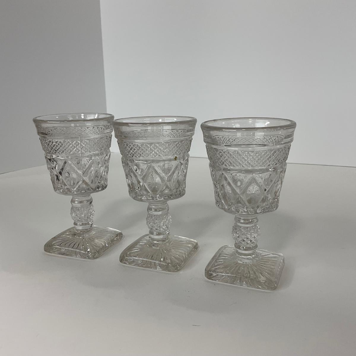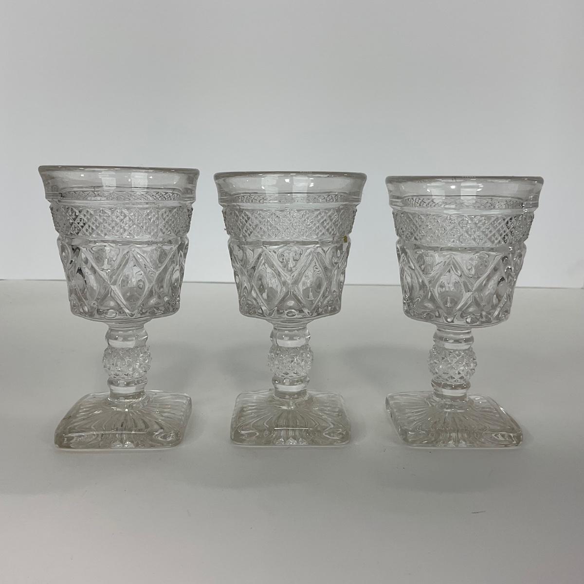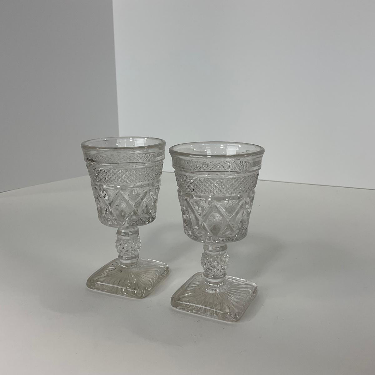 Nine pieces of Cape Cod Imperial Glass Co. (1932-1980) including seven cordials and one salt & pepper set. Please see photos for details and condition. ::: Shipping is available on this lot. If you require shipping you must let us know at the close of the auction. We will coordinate with you after the item has been won. Shipping fees will include insurance up to or exceeding the value of all items being mailed. If you have any questions regarding this lot please contact the auctioneer either via this website, by direct email or by phone. PICK UP TIMES and other important information can be found in the TERMS and DESCRIPTION of the auction. Please take a look for pertinent information. Thanks!