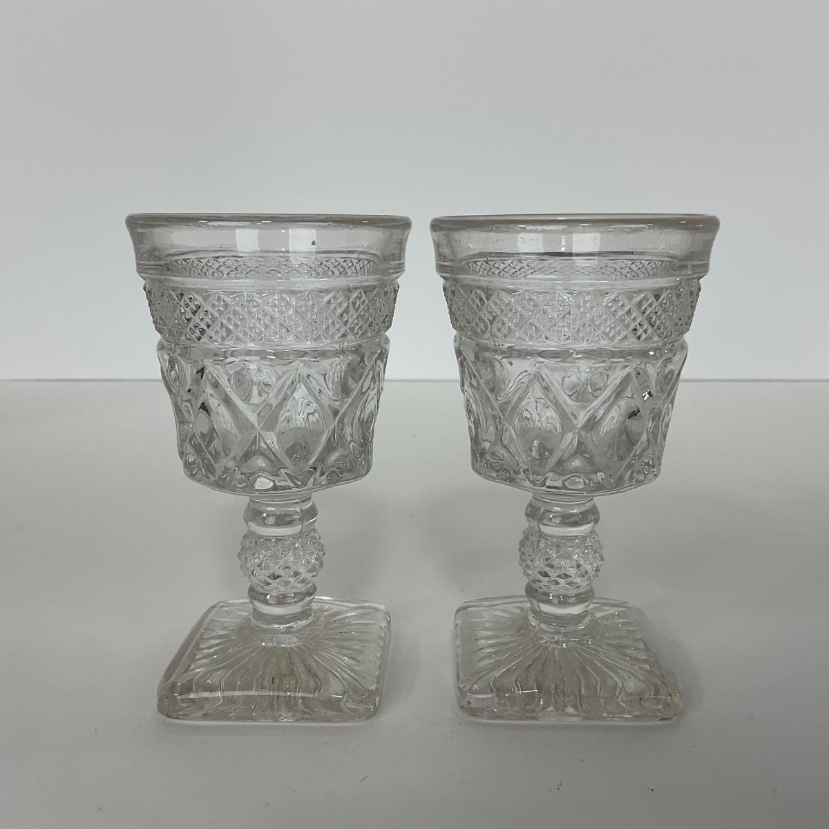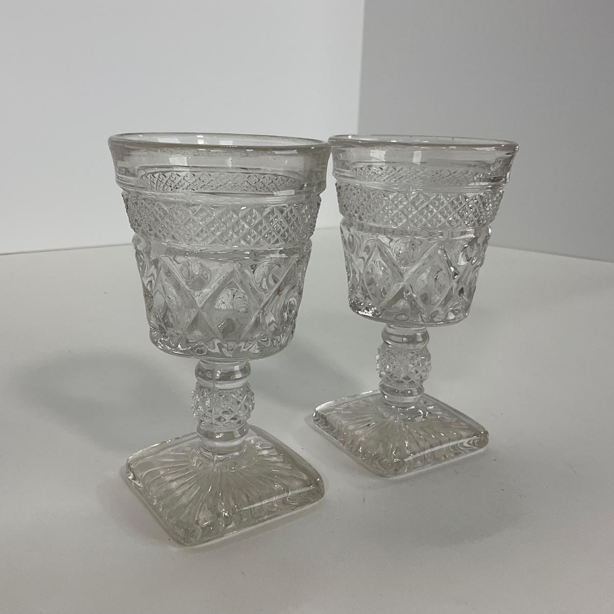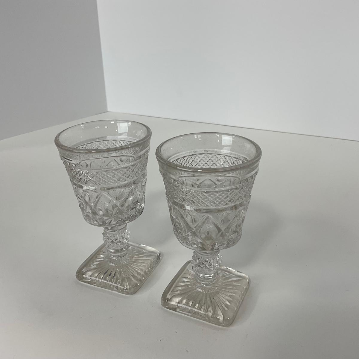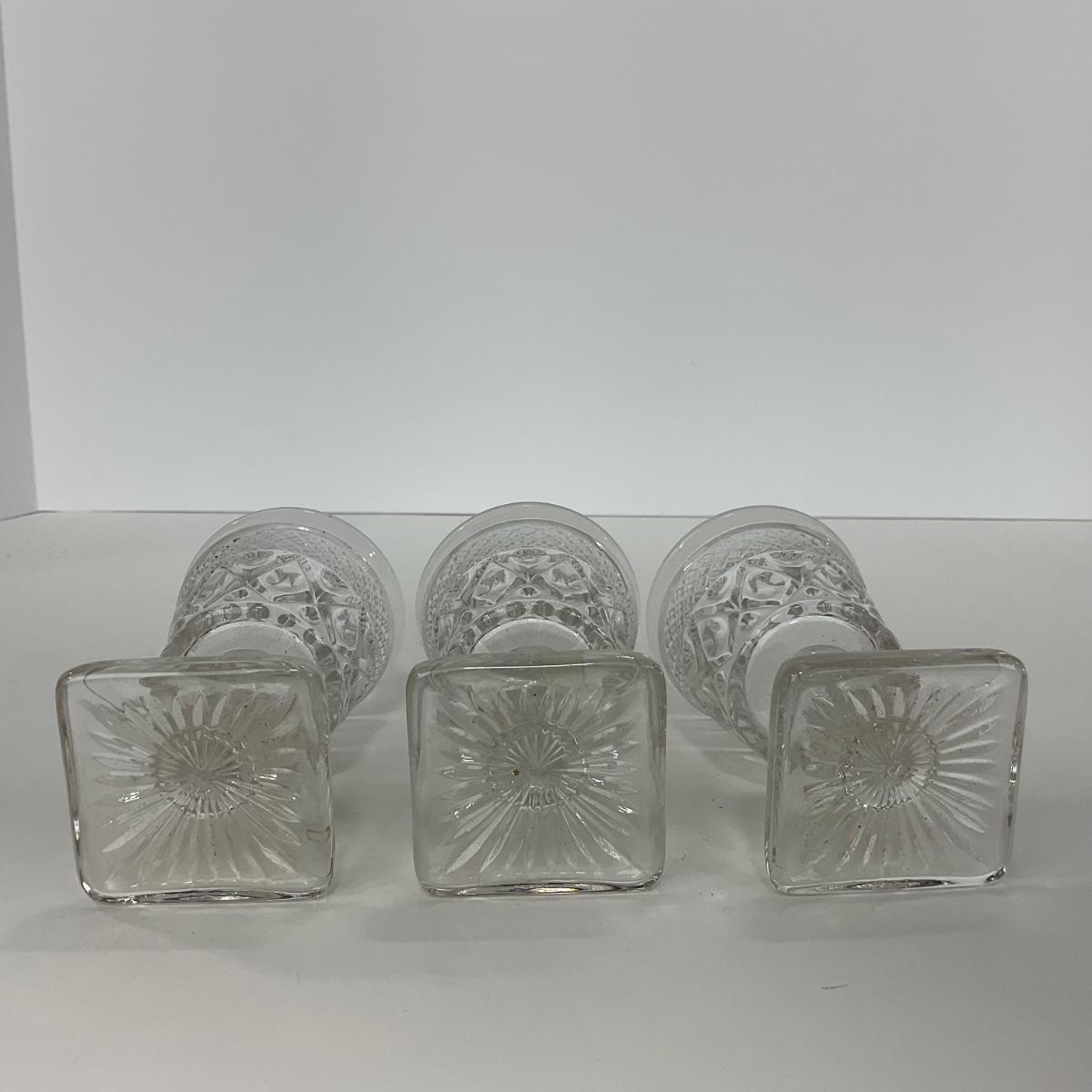 Nine pieces of Cape Cod Imperial Glass Co. (1932-1980) including seven cordials and one salt & pepper set. Please see photos for details and condition. ::: Shipping is available on this lot. If you require shipping you must let us know at the close of the auction. We will coordinate with you after the item has been won. Shipping fees will include insurance up to or exceeding the value of all items being mailed. If you have any questions regarding this lot please contact the auctioneer either via this website, by direct email or by phone. PICK UP TIMES and other important information can be found in the TERMS and DESCRIPTION of the auction. Please take a look for pertinent information. Thanks!