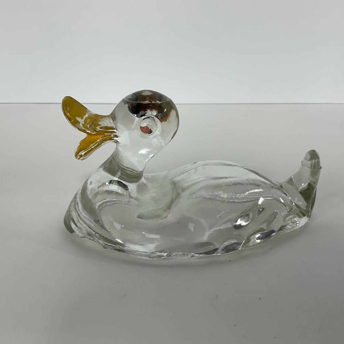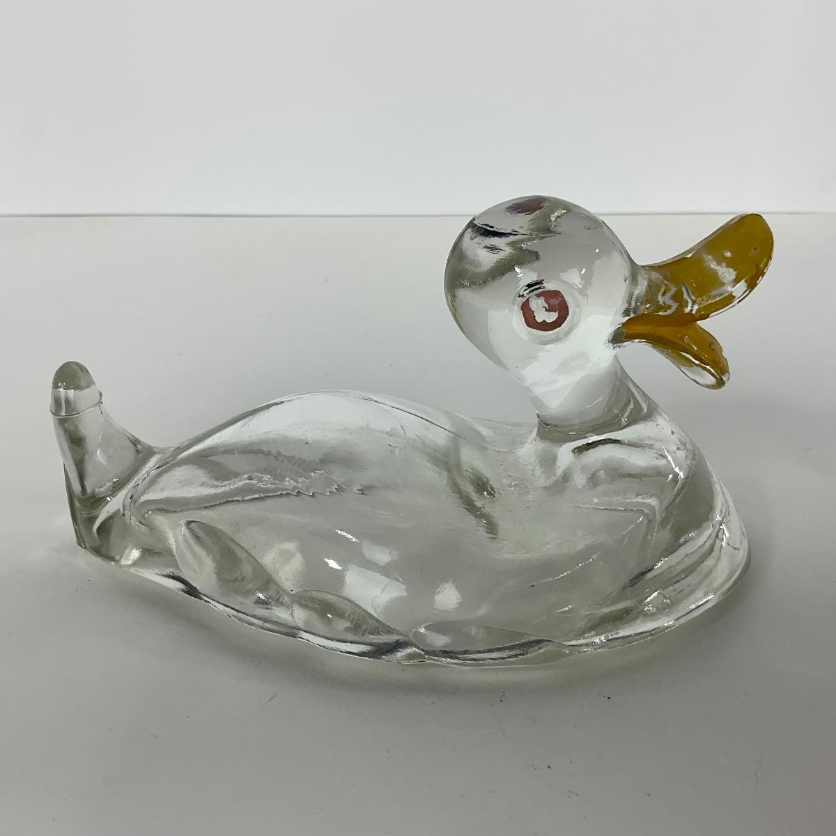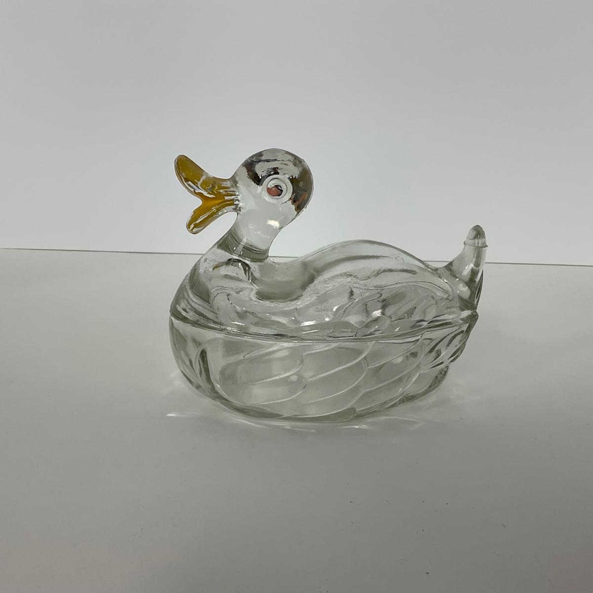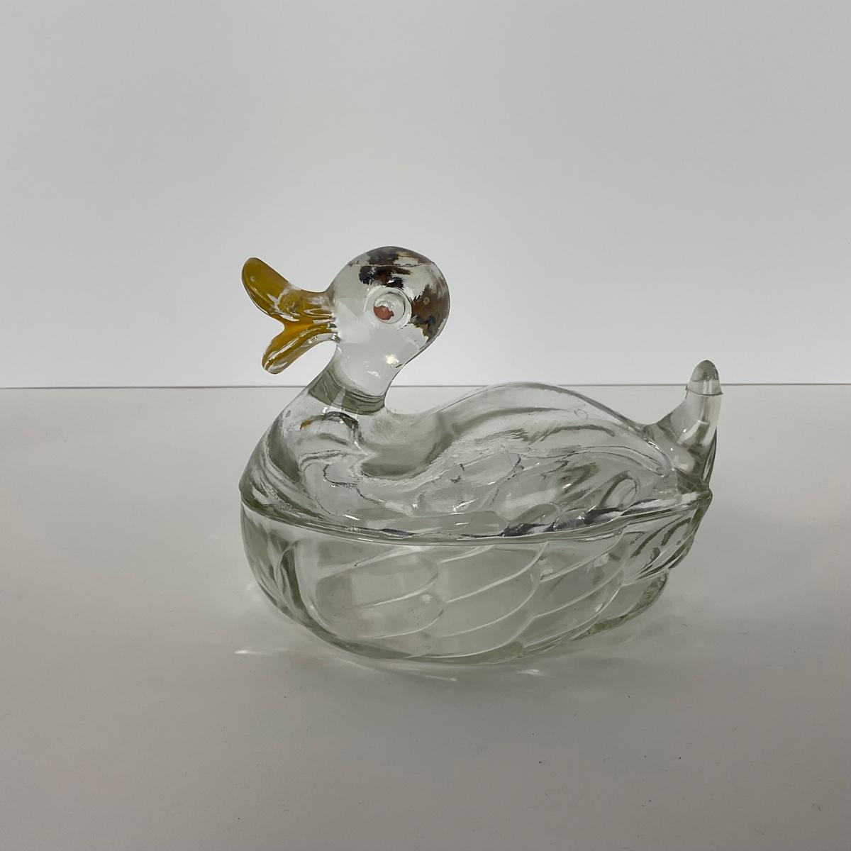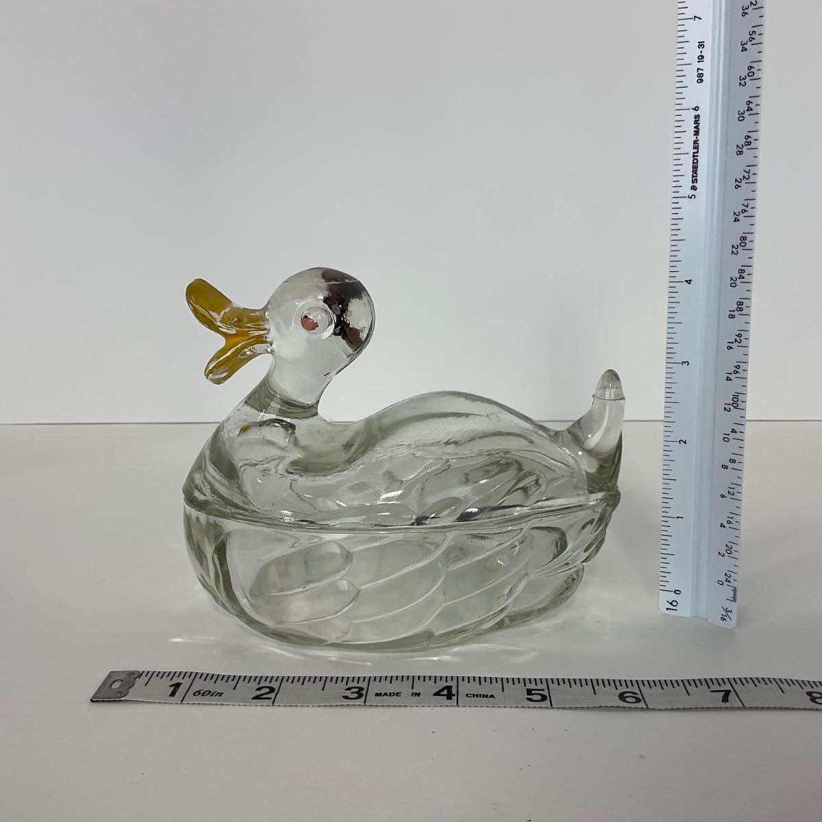 -283- GLASSWARE | Vintage Depression Glass Duck | Painted Trinket Box