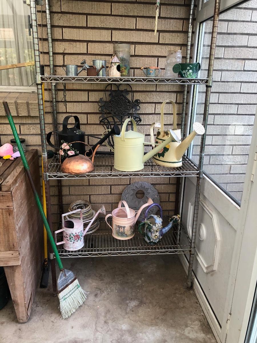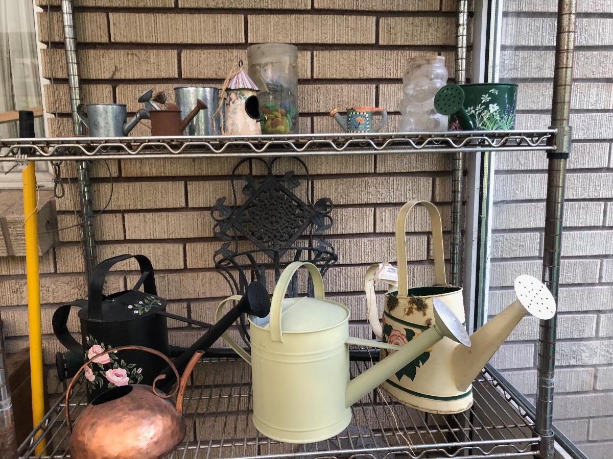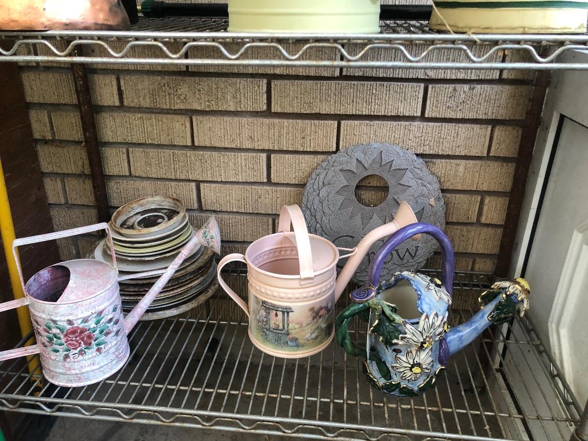 #283 Lot of garden watering cans and other garden knickknacks