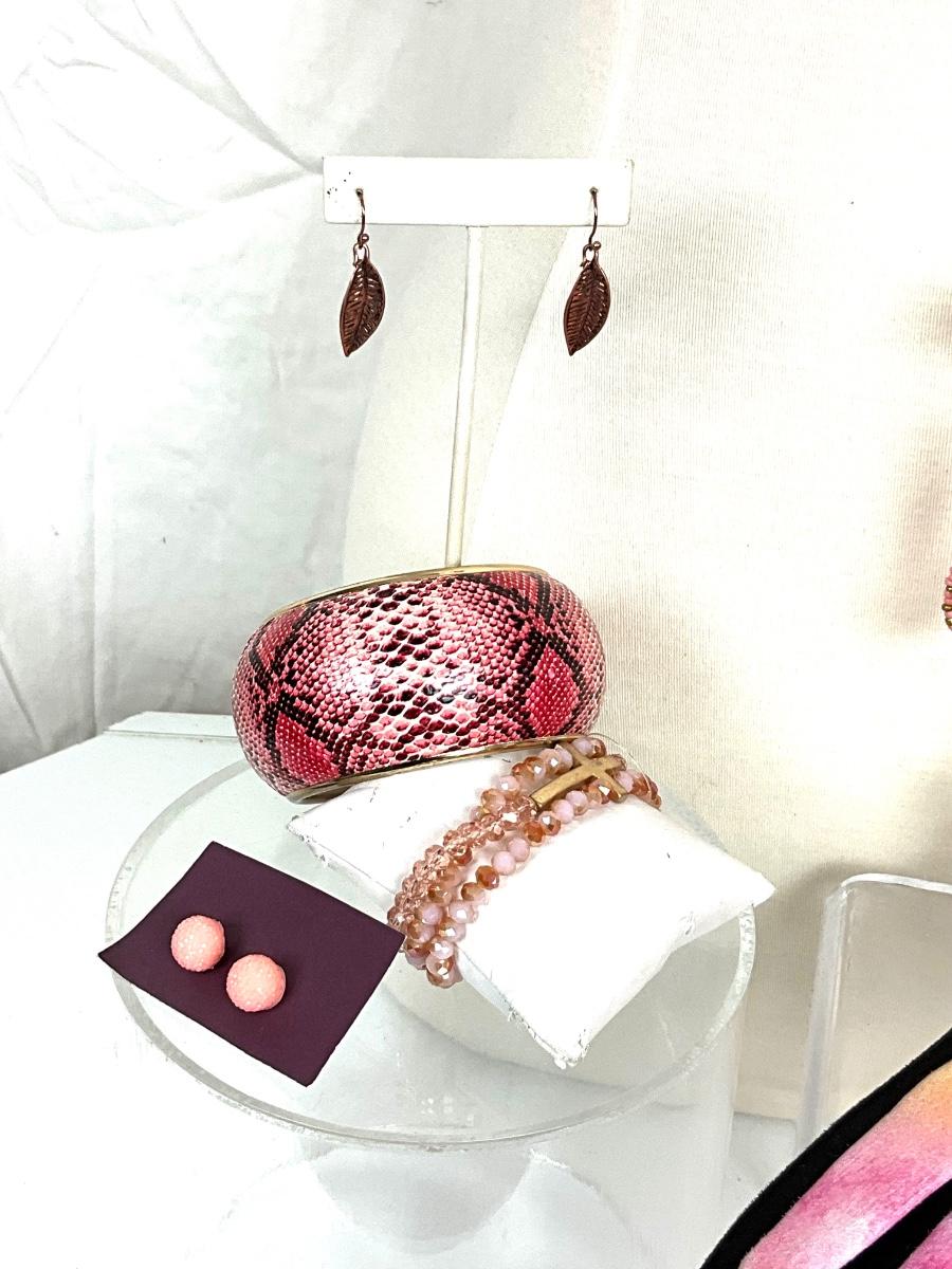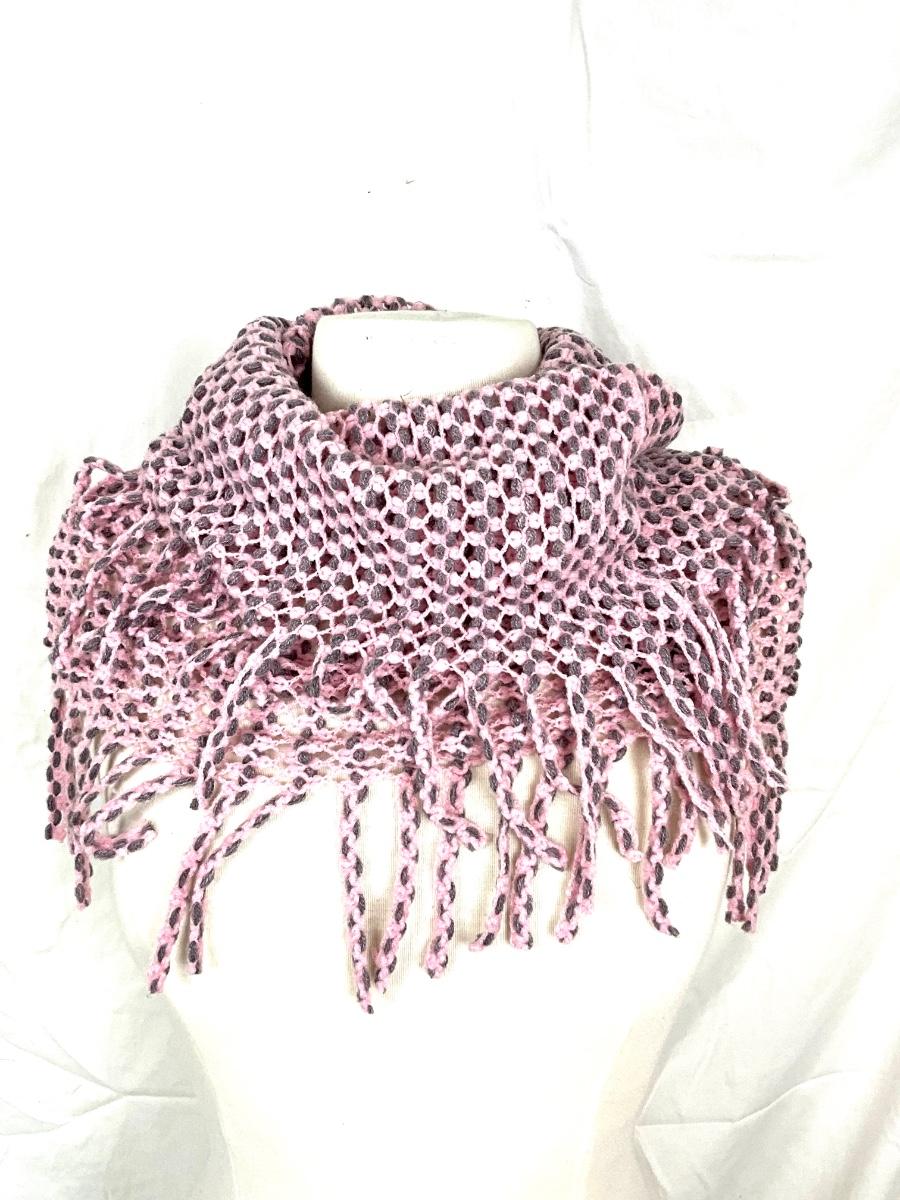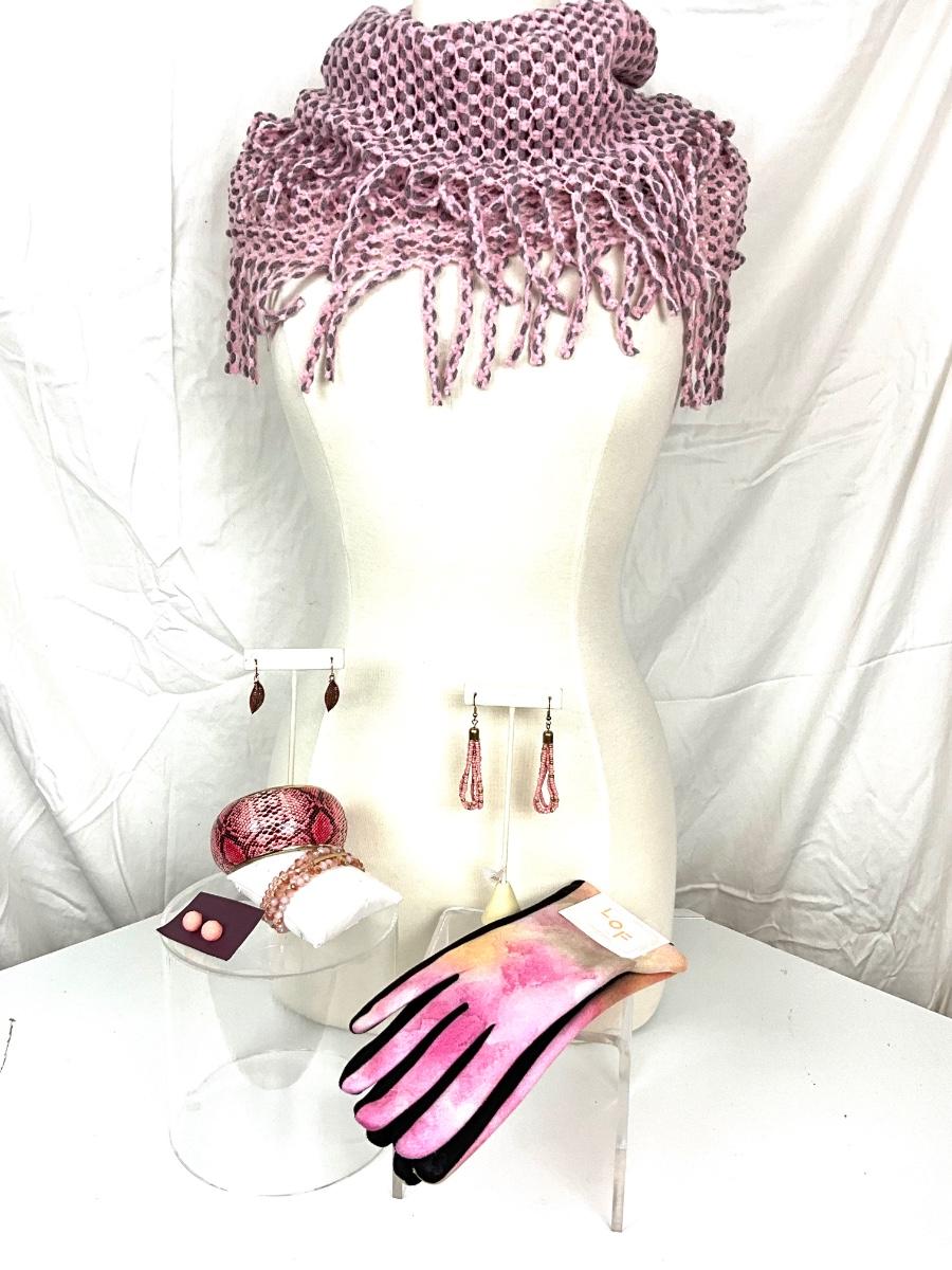283 Pink and Grey Infinity Scarf with Van Gogh Smart Touch Gloves, Pink Earrings, Two Bracelets