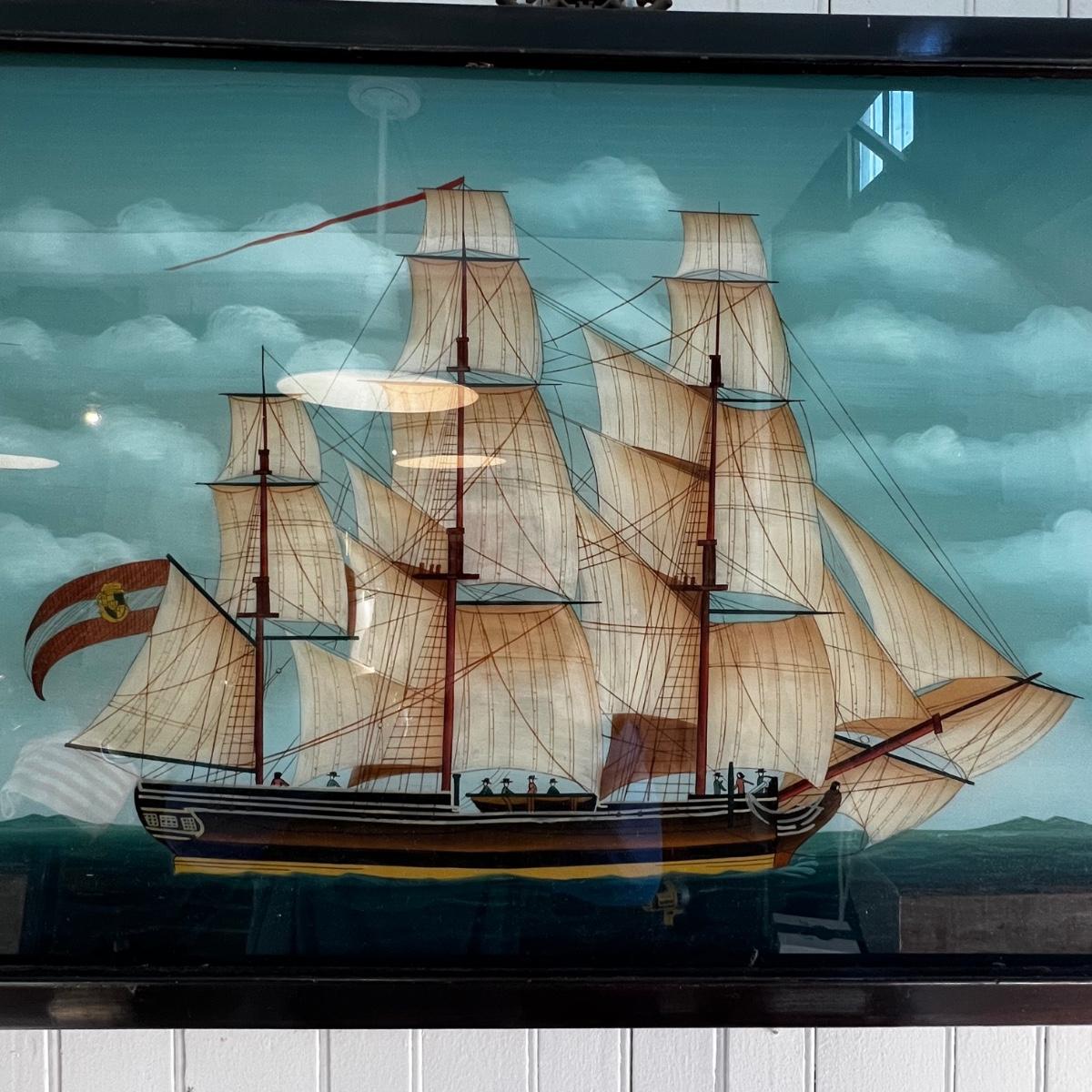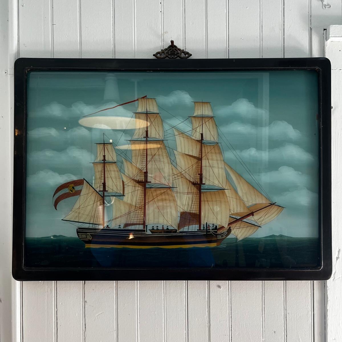 N283 Antique Reverse Glass Hand-painted Chinese Clippership