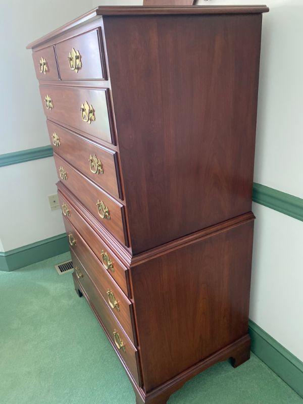285: Henkel Harris Solid Black Cherry Chest on Chest. measuring 36" wide, 54.75" tall , 20.5" deep