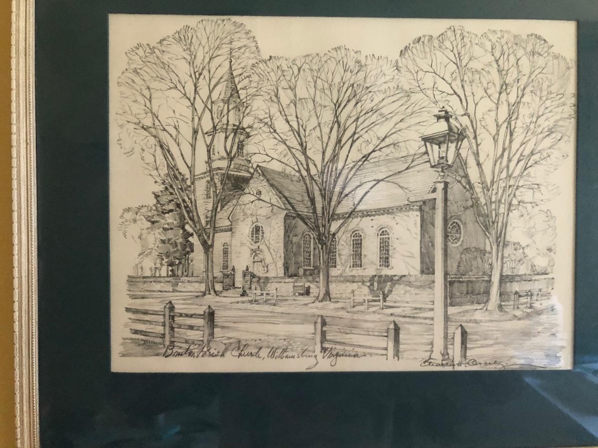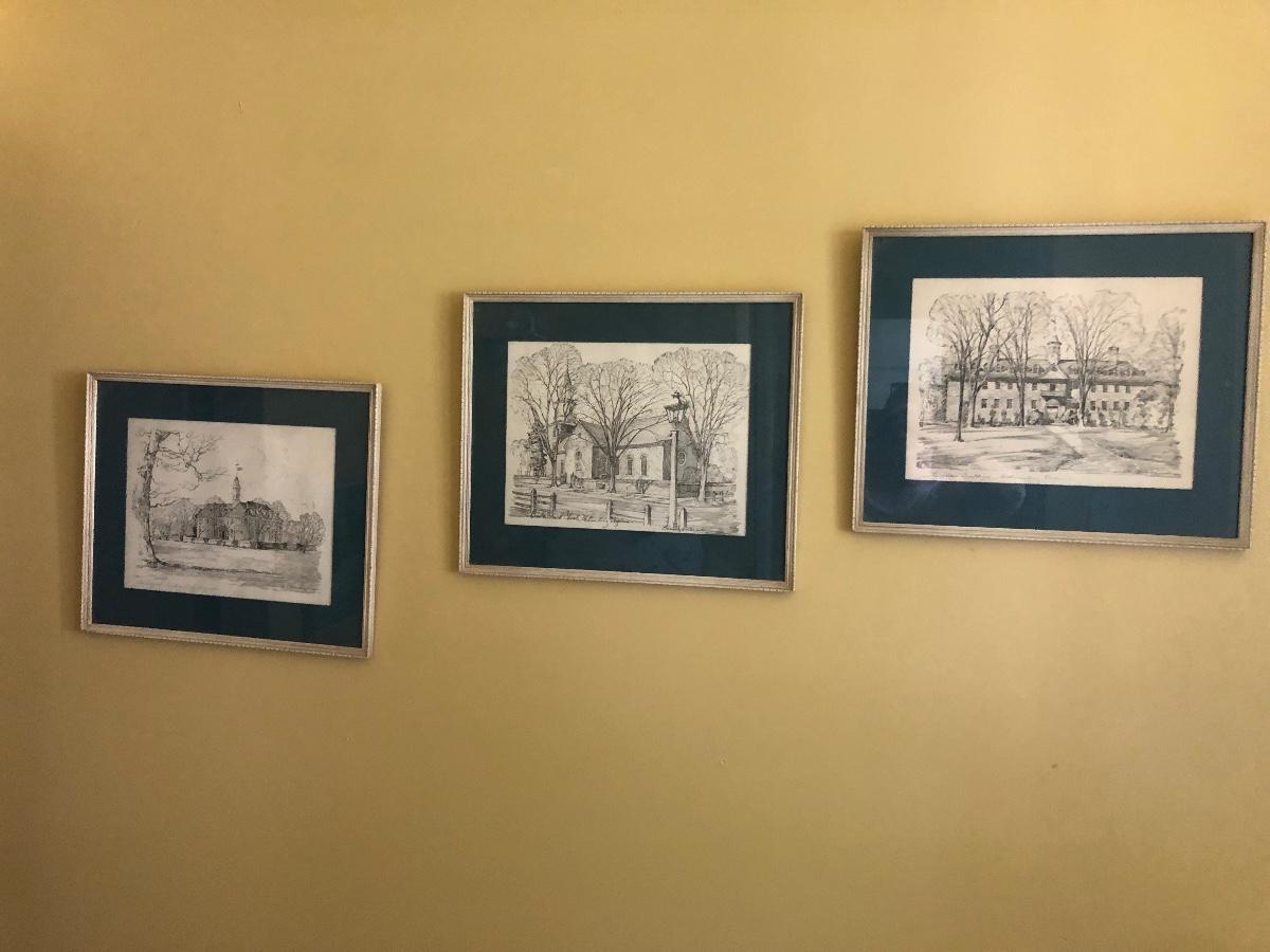 #284 Three framed sketches of houses measure 17 x 14 1/2 each