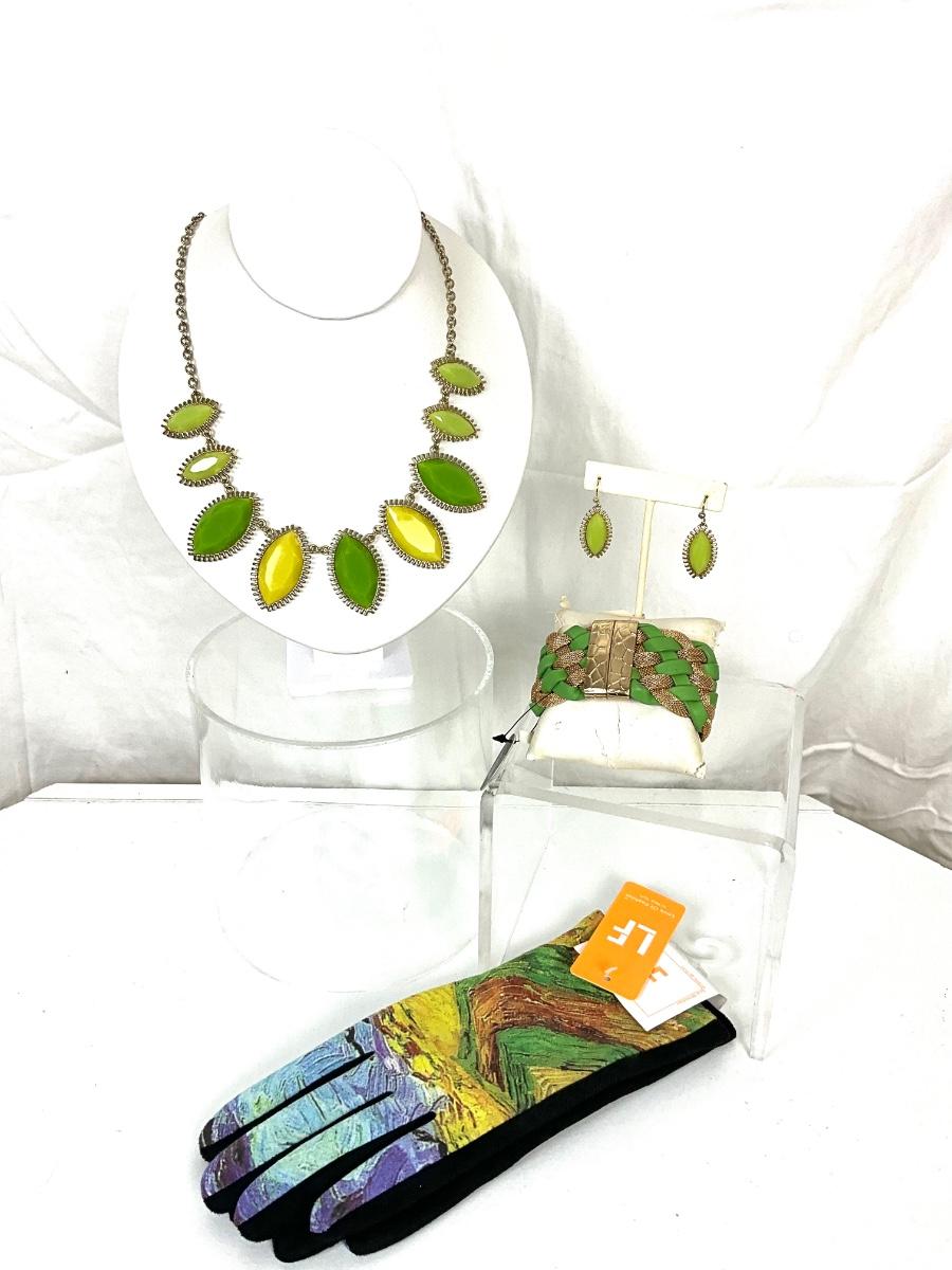 284 Van Gogh Design Smart Screen Gloves with Bracelet, Necklace Earrings Set