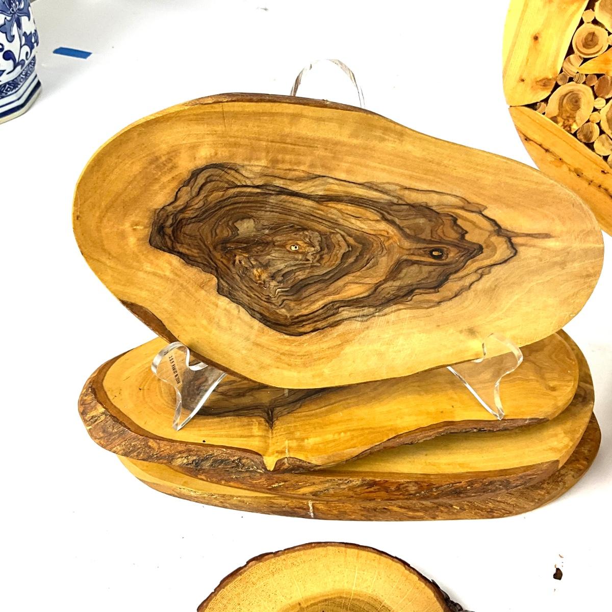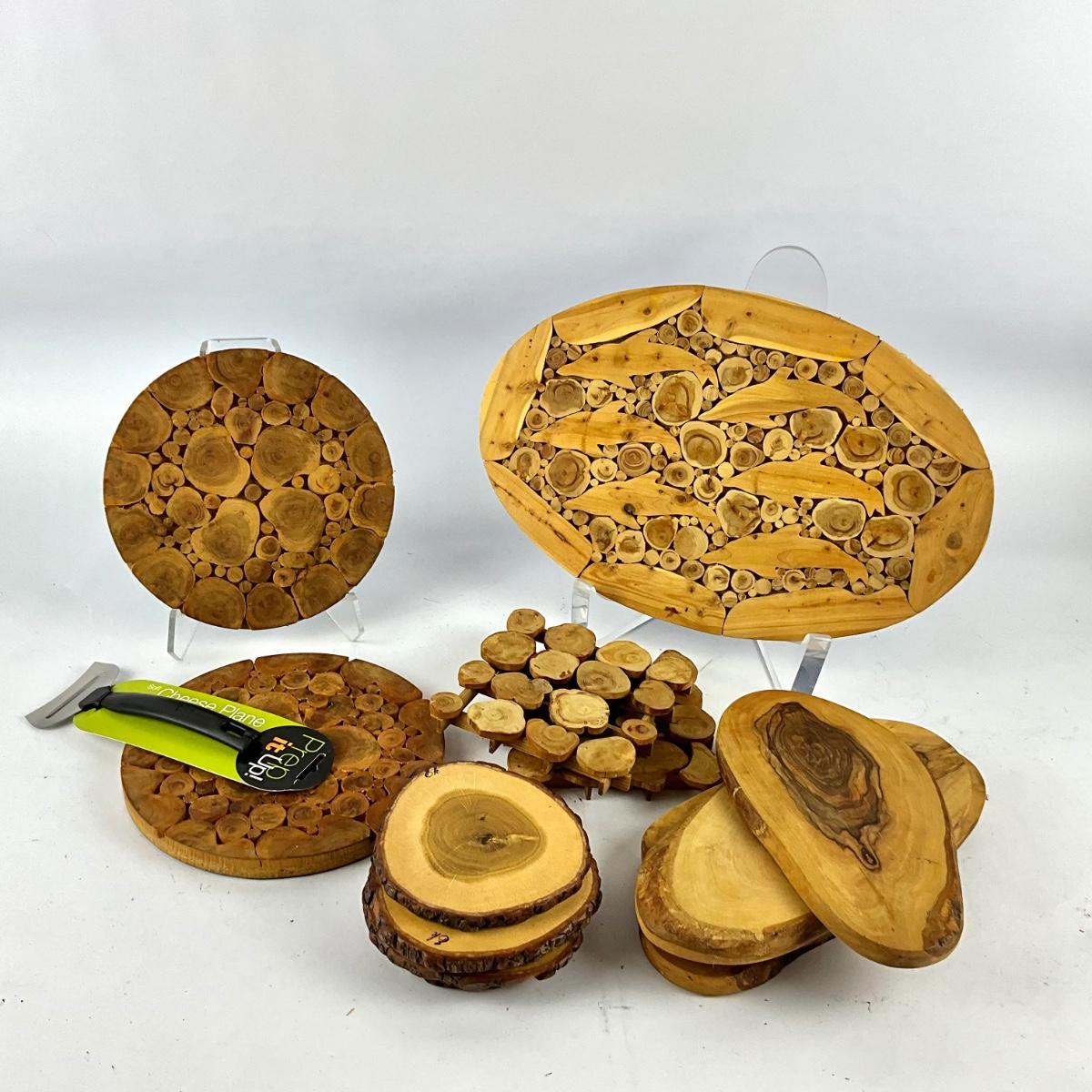 Various live wood trivets and large oval trivets, wooden bowl and more