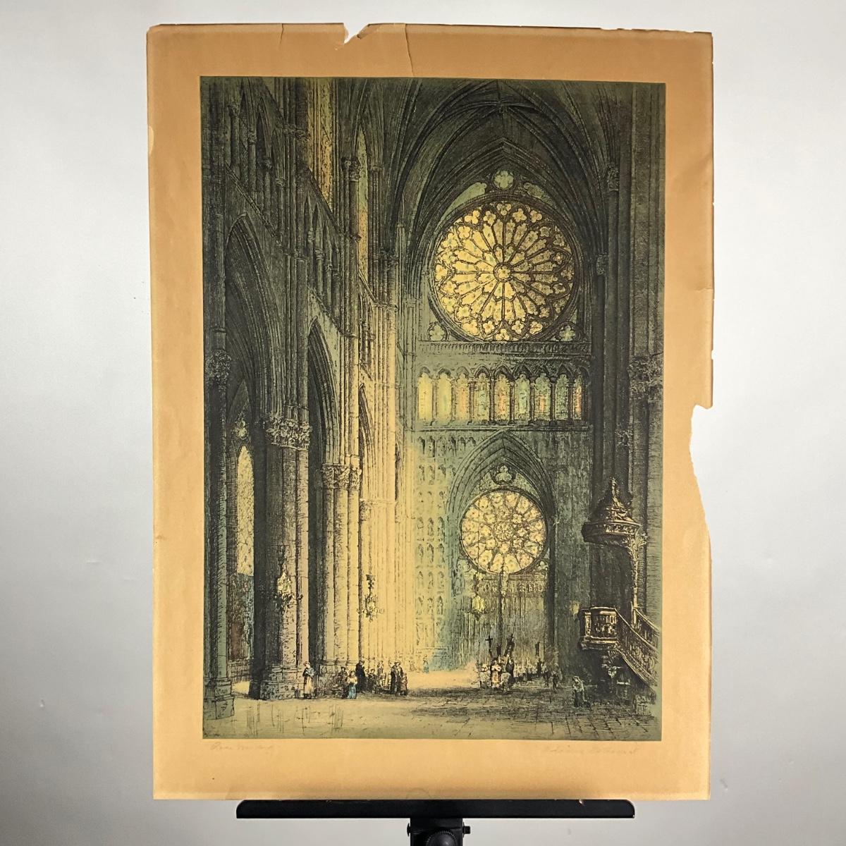 190 Colored Etching "Rose Window, Notre Dame Cathedral" Paris