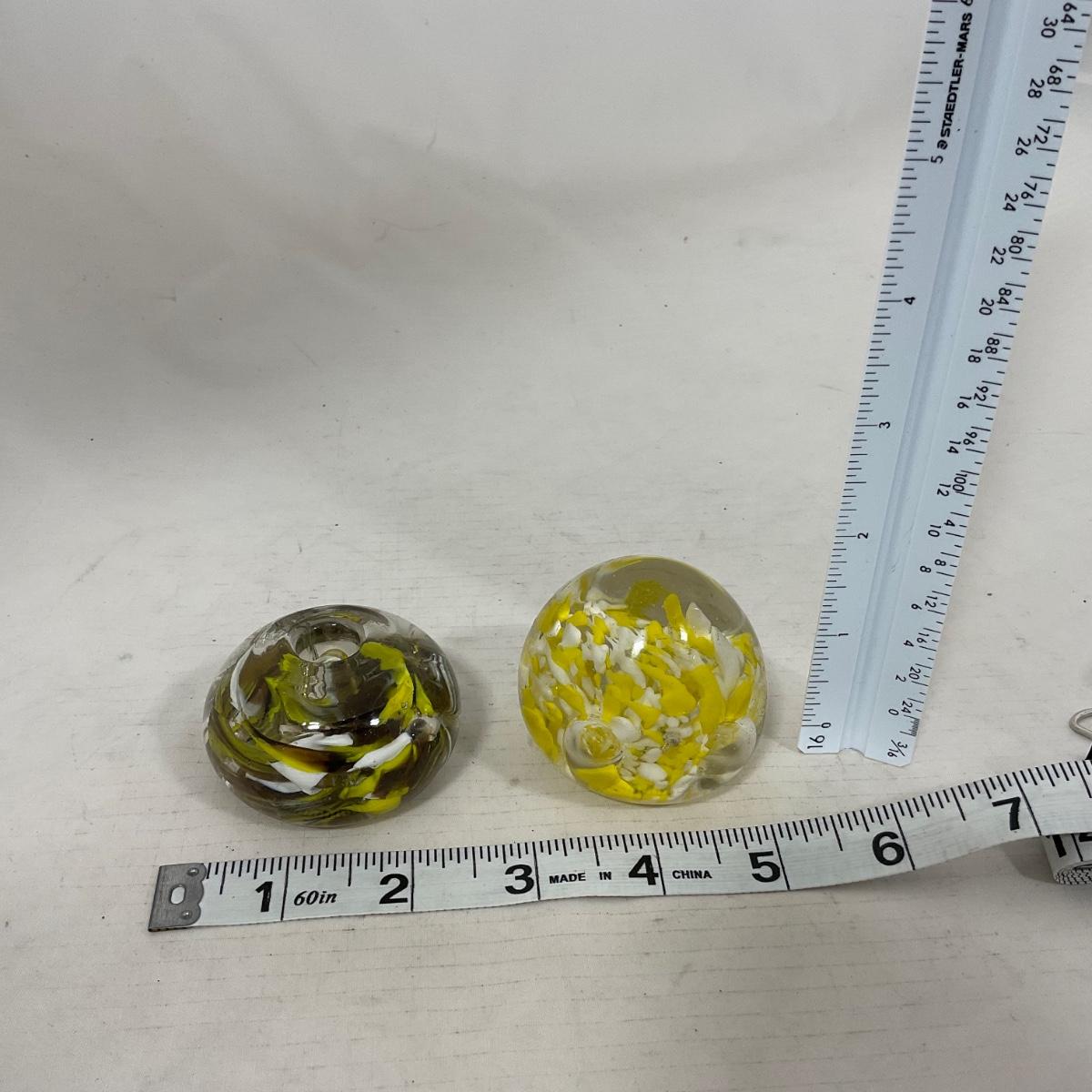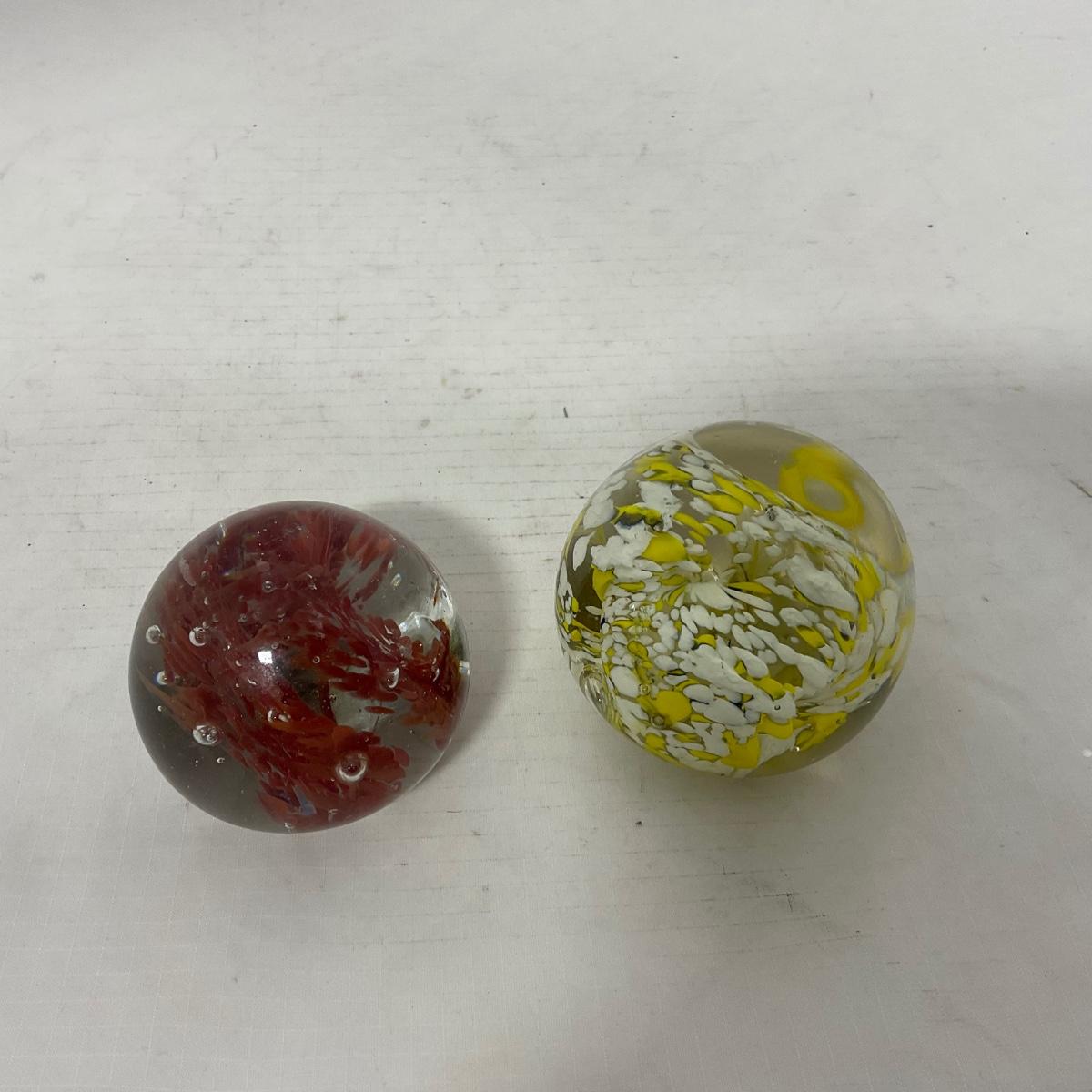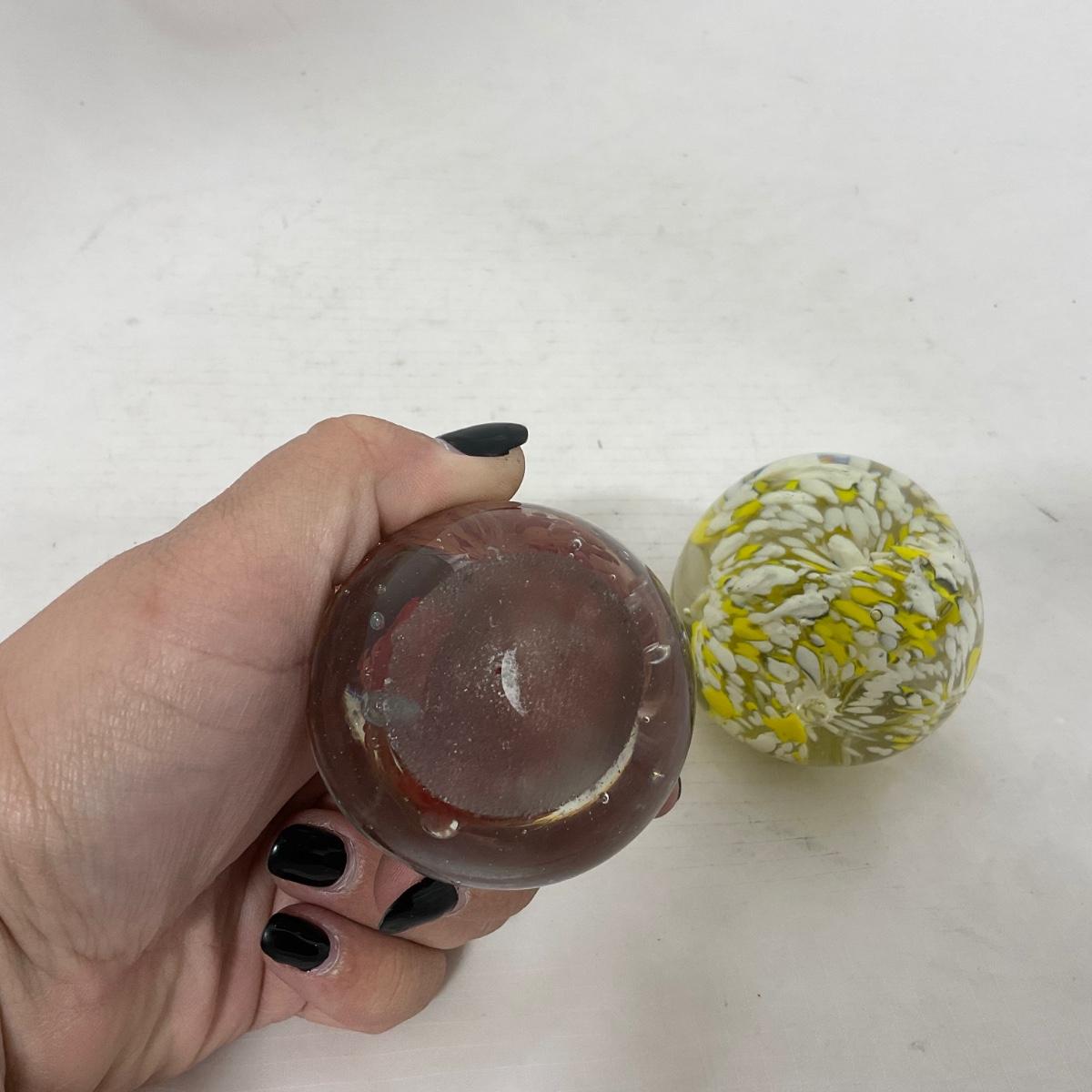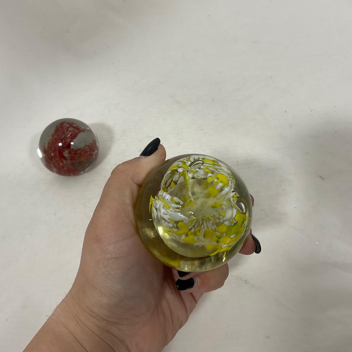 Four vintage glass paper weights. There is some damage (Pictured). Please see photos for details and condition. ::: Shipping is available on this lot. If you require shipping you must let us know at the close of the auction. We will coordinate with you after the item has been won. Shipping fees will include insurance up to or exceeding the value of all items being mailed. If you have any questions regarding this lot please contact the auctioneer either via this website, by direct email or by phone. PICK UP TIMES and other important information can be found in the TERMS and DESCRIPTION of the auction. Please take a look for pertinent information. Thanks!
