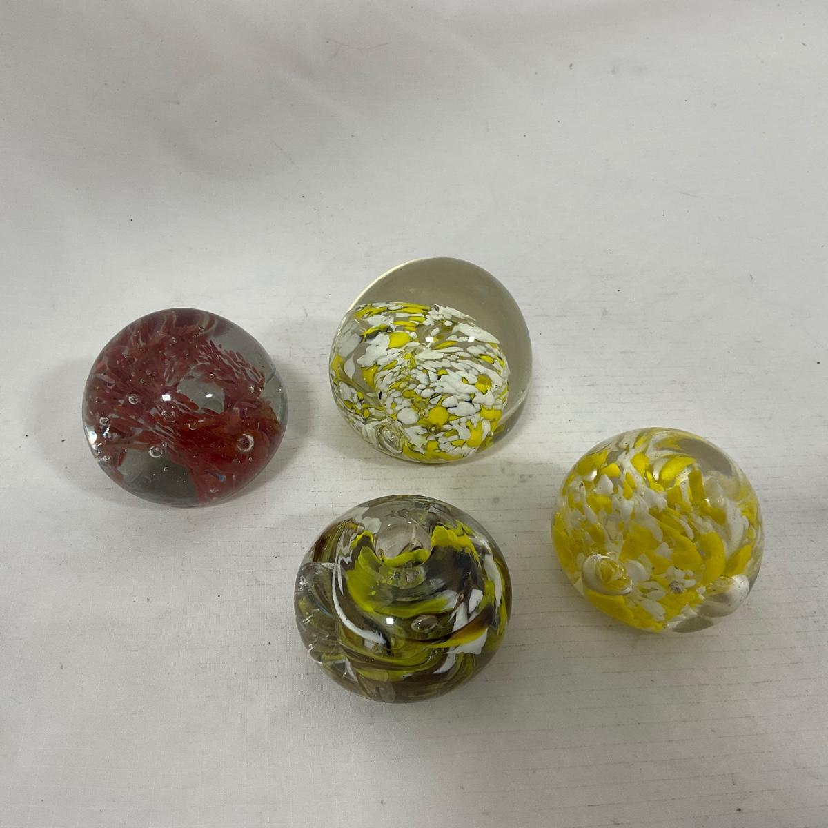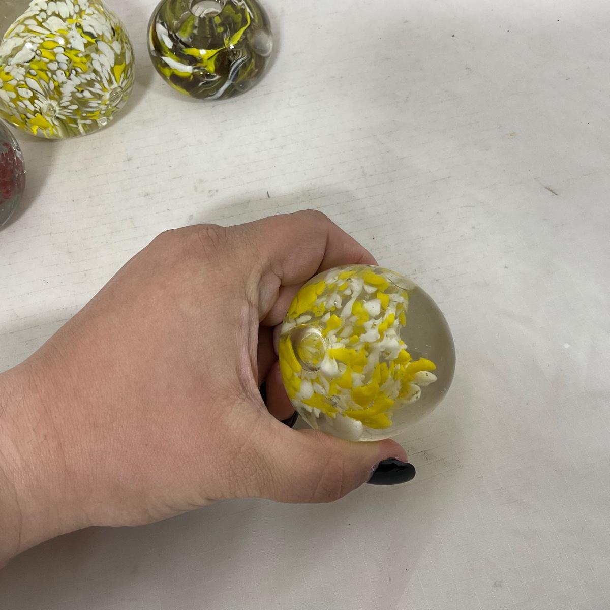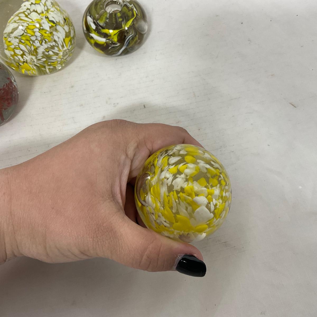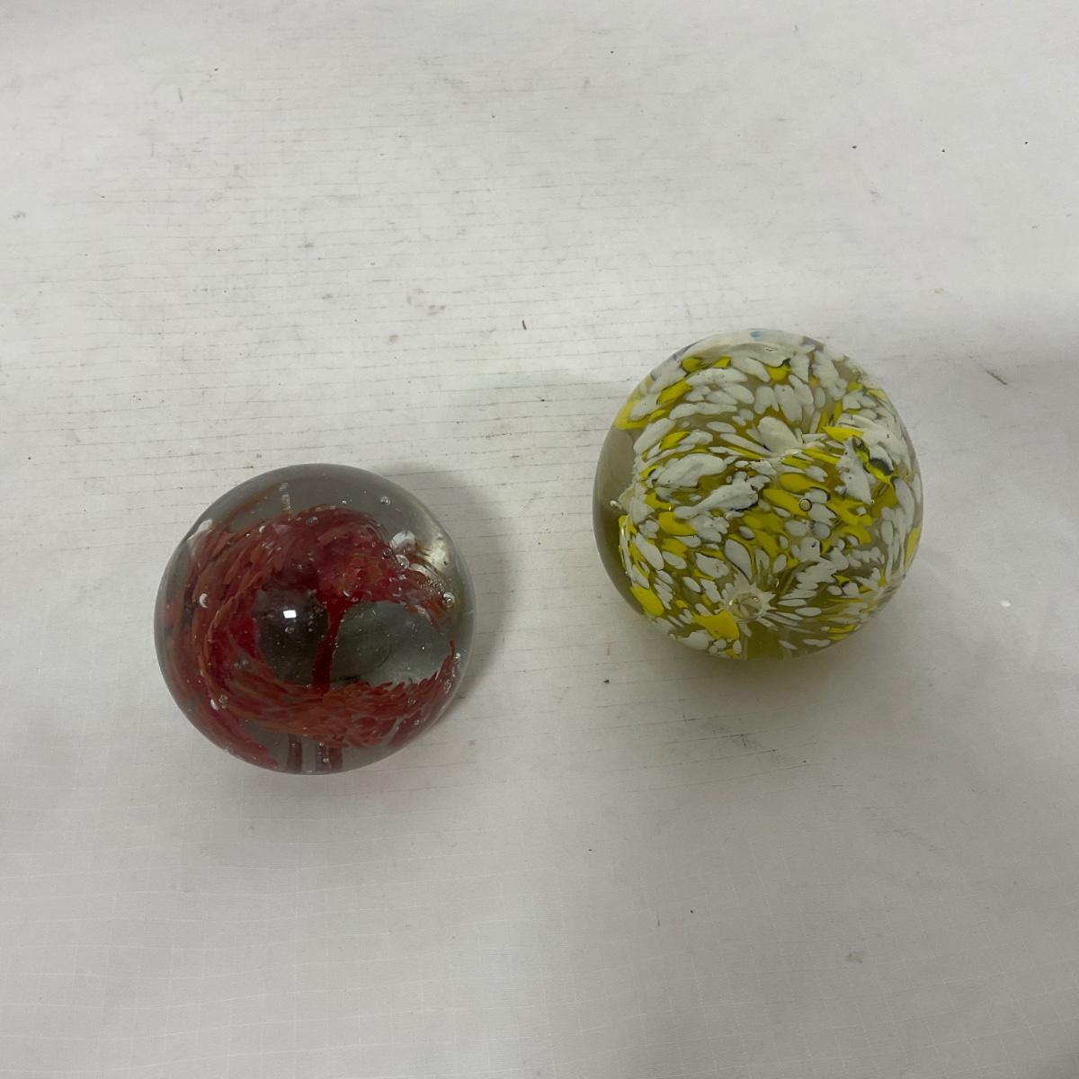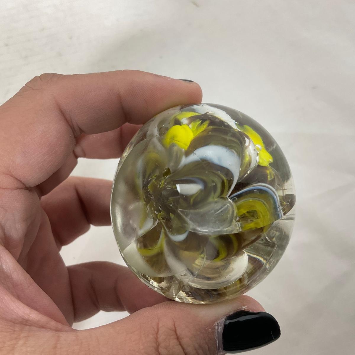 Four vintage glass paper weights. There is some damage (Pictured). Please see photos for details and condition. ::: Shipping is available on this lot. If you require shipping you must let us know at the close of the auction. We will coordinate with you after the item has been won. Shipping fees will include insurance up to or exceeding the value of all items being mailed. If you have any questions regarding this lot please contact the auctioneer either via this website, by direct email or by phone. PICK UP TIMES and other important information can be found in the TERMS and DESCRIPTION of the auction. Please take a look for pertinent information. Thanks!