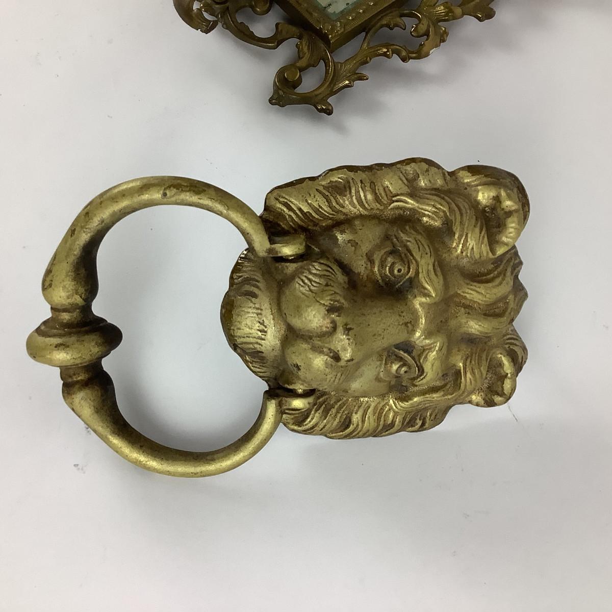 286 Antique Brass Lion Head Door Knocker & Antique Small Brass Framed Mirror