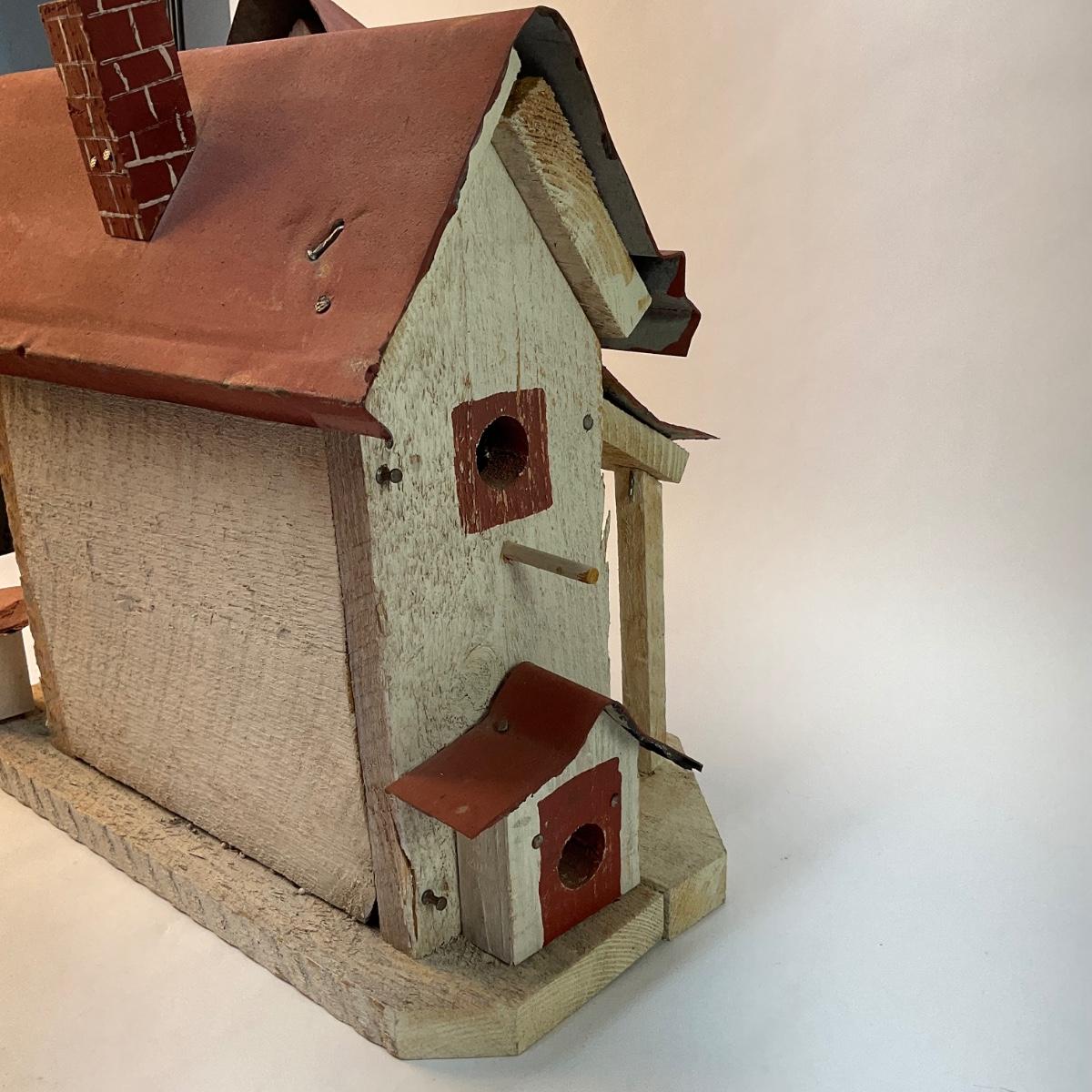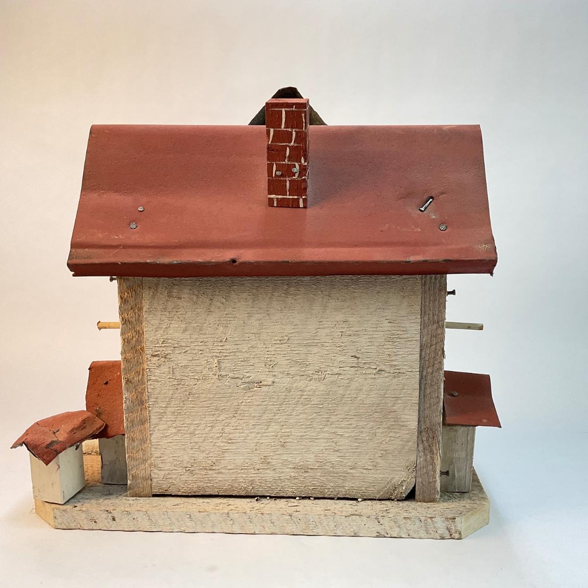 286 Bird House White Wood Painted with ‎(Metal Roof-Terra cotta color roof)