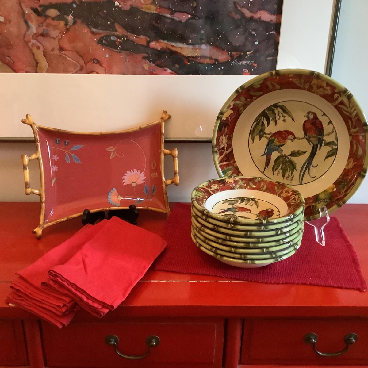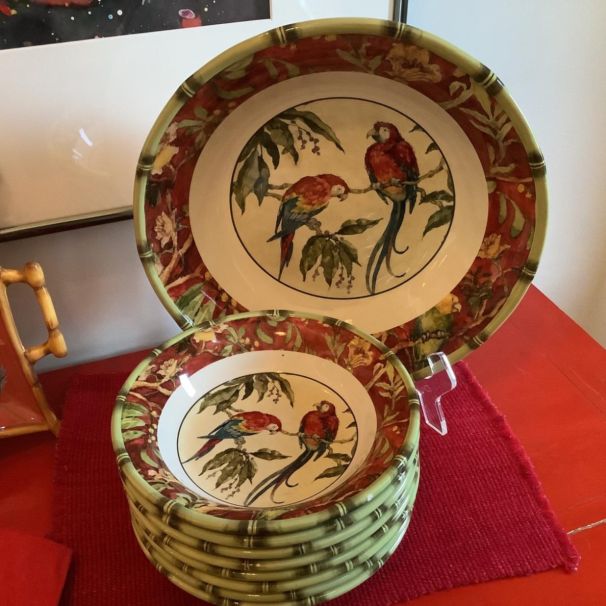 286 Tracy Porter Ceramic Tray with Ceramic Parrot Bowls by Betty Whitaker