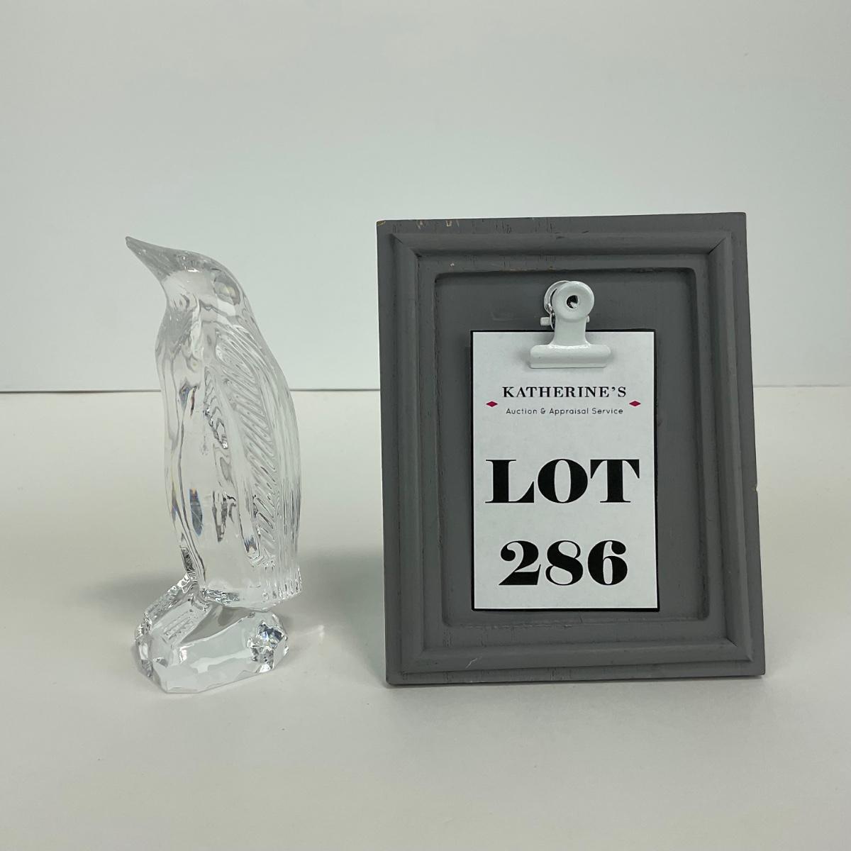 One marked clear glass crystal penguin figure. This piece has no damage, and appears to be in great shape with no visable chips, cracks, or broken pieces. Please see photos for details and condition. Any condition statement is given as a courtesy to a client, is an opinion, and should not be treated as a statement of fact. Reference to condition written, oral or within a condition report shall not be regarded as a full account of condition and may not include all defects, alterations, or restorations. Absence of a condition report does not imply a lot is flawless or lacking imperfections or damage. Katherine’s Auction & Appraisal Service shall have no responsibility for any error or omission. Returns shall not be accepted on the basis of condition. ::: Shipping is available on this lot. If you require shipping you must let us know at the close of the auction. We will coordinate with you after the item has been won. Shipping fees will include insurance up to or exceeding the value of all items being mailed. If you have any questions regarding this lot please contact the auctioneer either via this website, by direct email or by phone. PICK UP TIMES and other important information can be found in the TERMS and DESCRIPTION of the auction. Please take a look for pertinent information. Thanks!