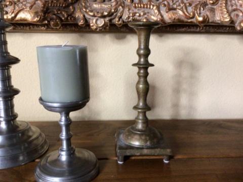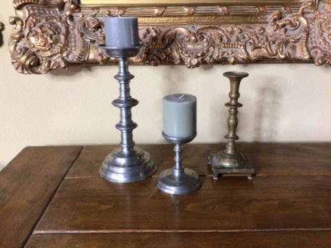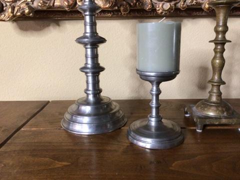 287 - (3) Candlesticks - 2 Pewter & 1 Brass