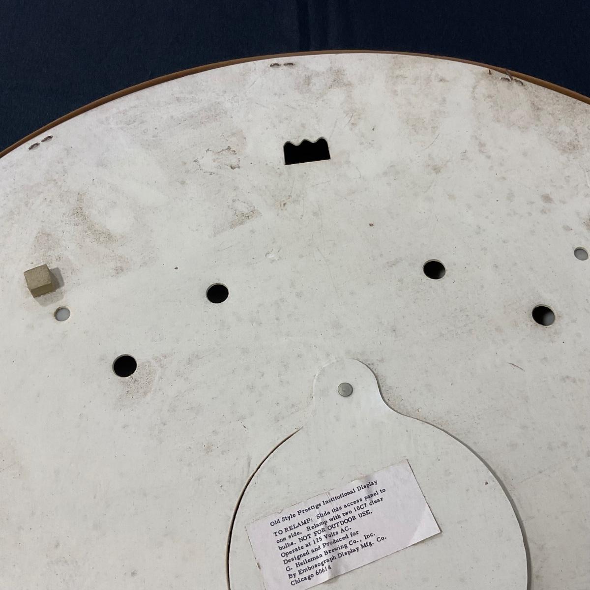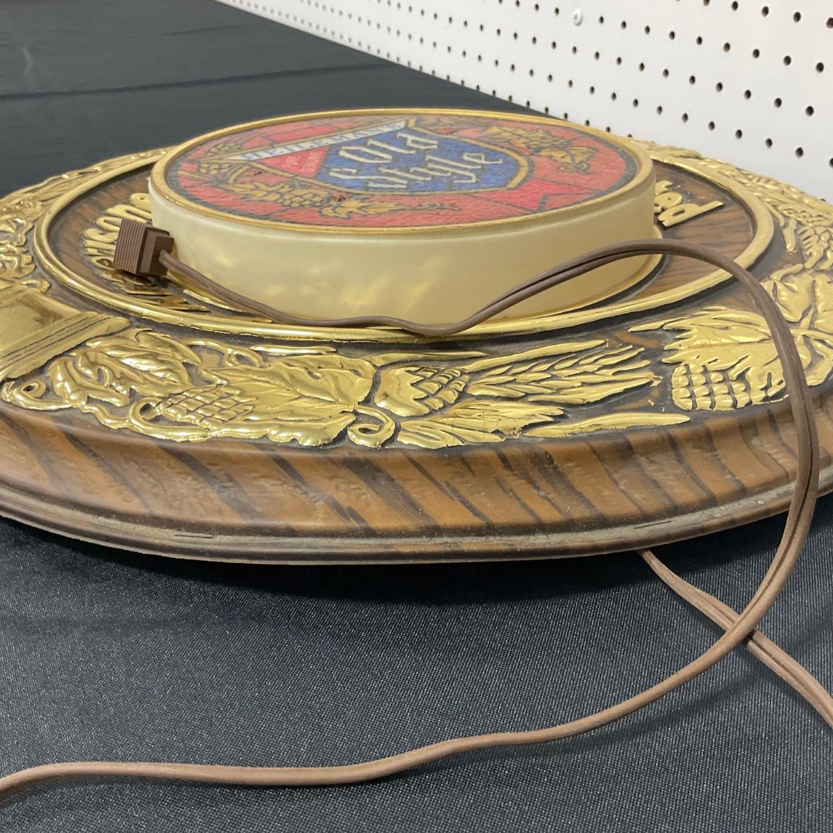 One vintage Old Style lighted beer sign in working condition. 19 inches around. Please see photos for details and condition. ::: Shipping is NOT available on this lot. If you have any questions regarding this lot please contact the auctioneer either via this website, by direct email or by phone. PICK UP TIMES and other important information can be found in the TERMS and DESCRIPTION of the auction. Please take a look for pertinent information. Thanks!