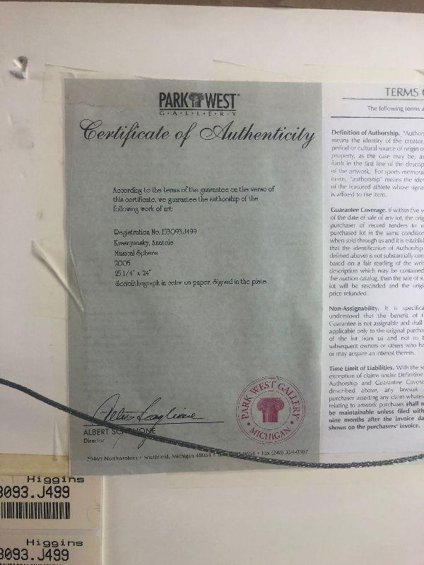 By Anatole Krasnyasky Size Frame 35" Square Print is 26 x 26 2005
