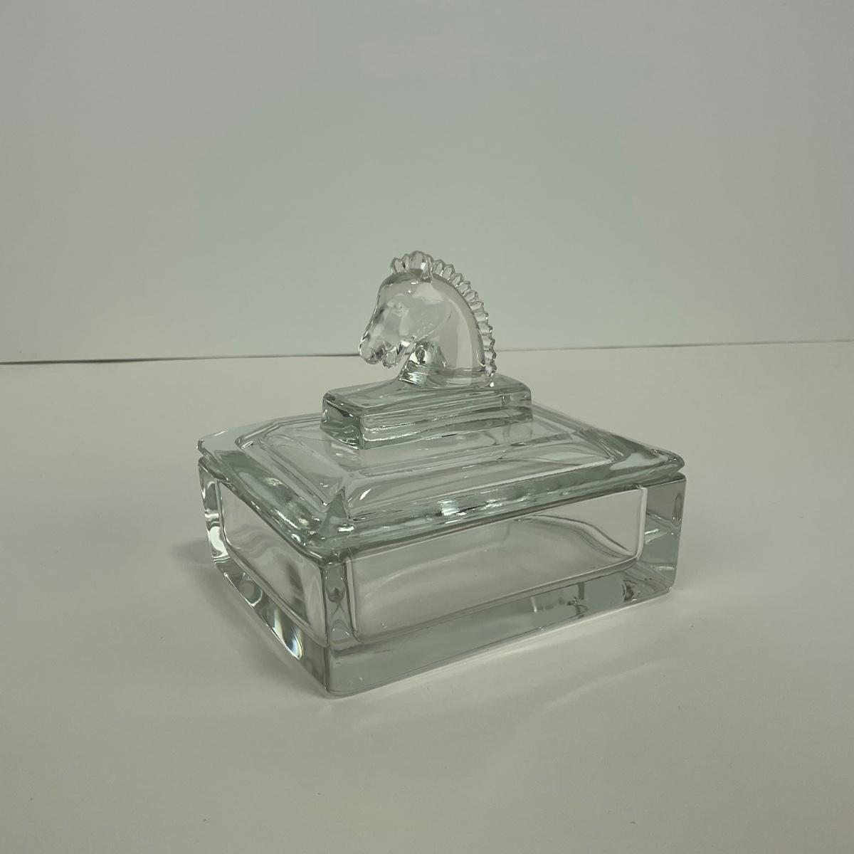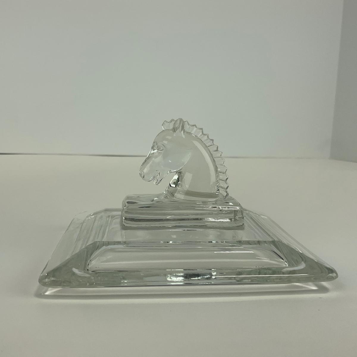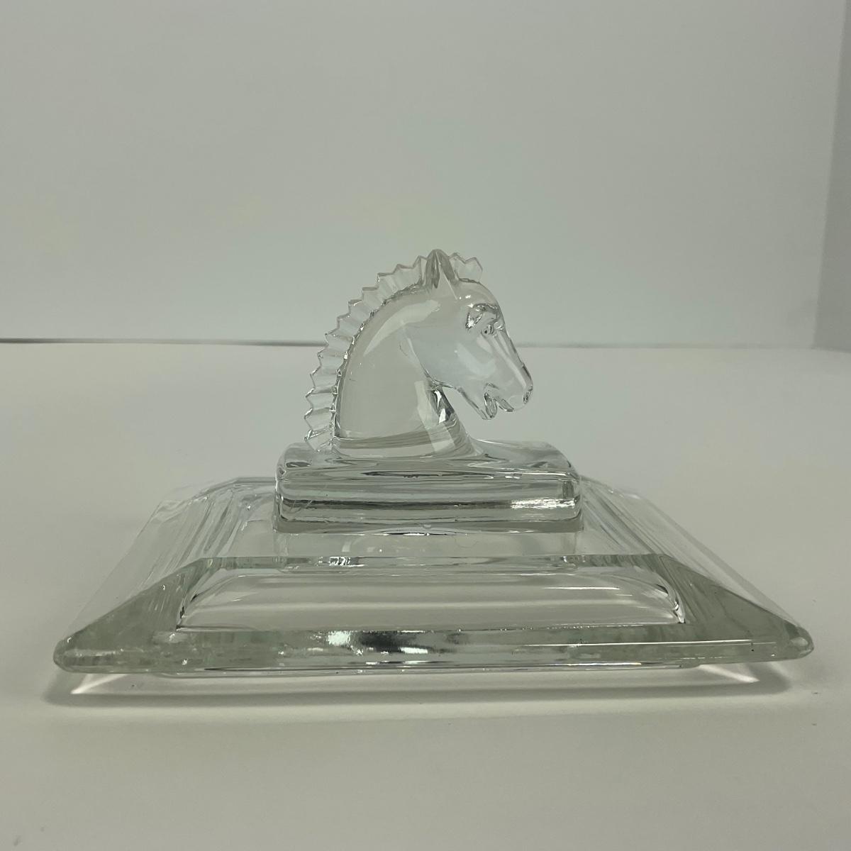 -287- HEISEY | Clear Glass Horsehead Figural Cigarette Box