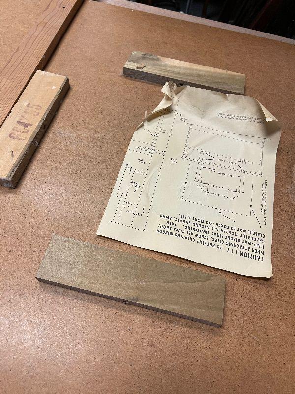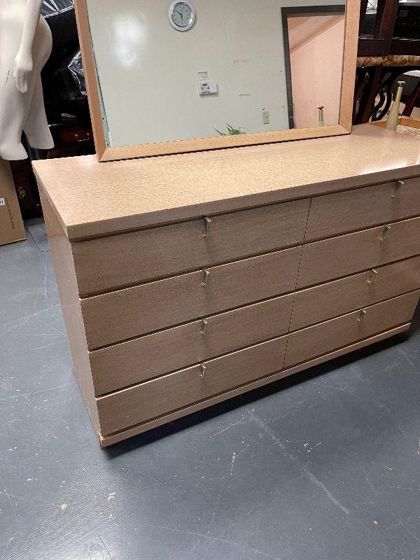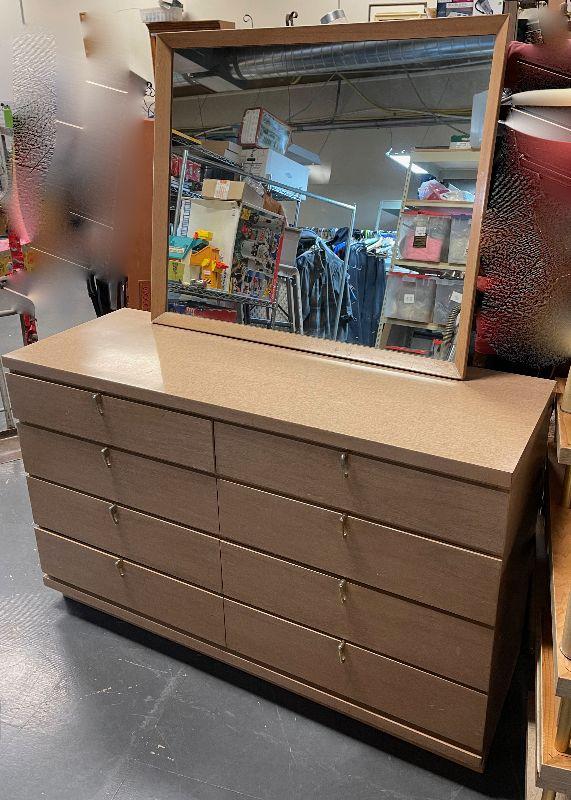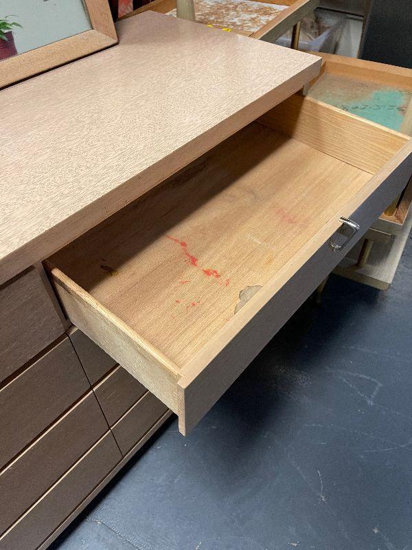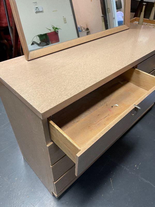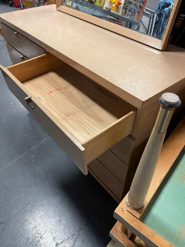 Circa 1960. 50" x 18" x 31". Mirror is 36" x 30". Has Wear from Use. One of Mirror Brackets Needs Re-Attaching.